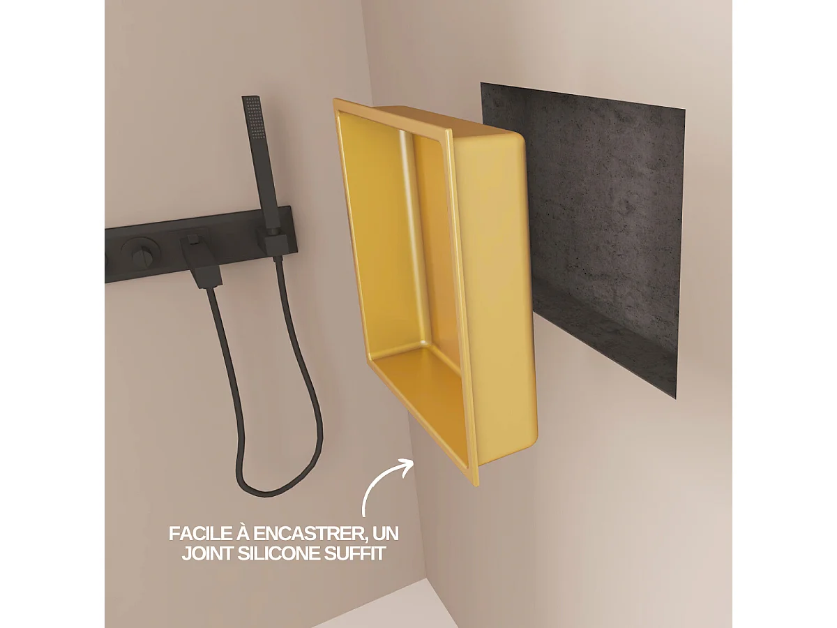 Niche de Douche, Rangement mural de Salle de Bain et Douche 33x33cm Or Satiné, NOOK by SANIZÉO