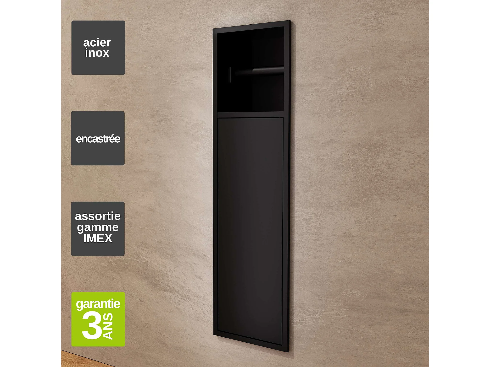 Niche de WC 17 x 60 cm - Rangement Mural Encastrable en finition Noir Mat - EGEAN