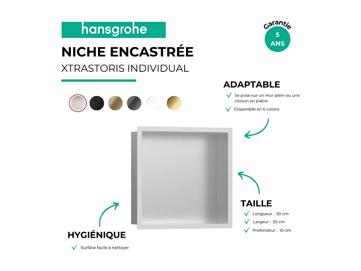 Niche murale fond acier HANSGROHE XtraStoris cadre acier inoxydable brossé