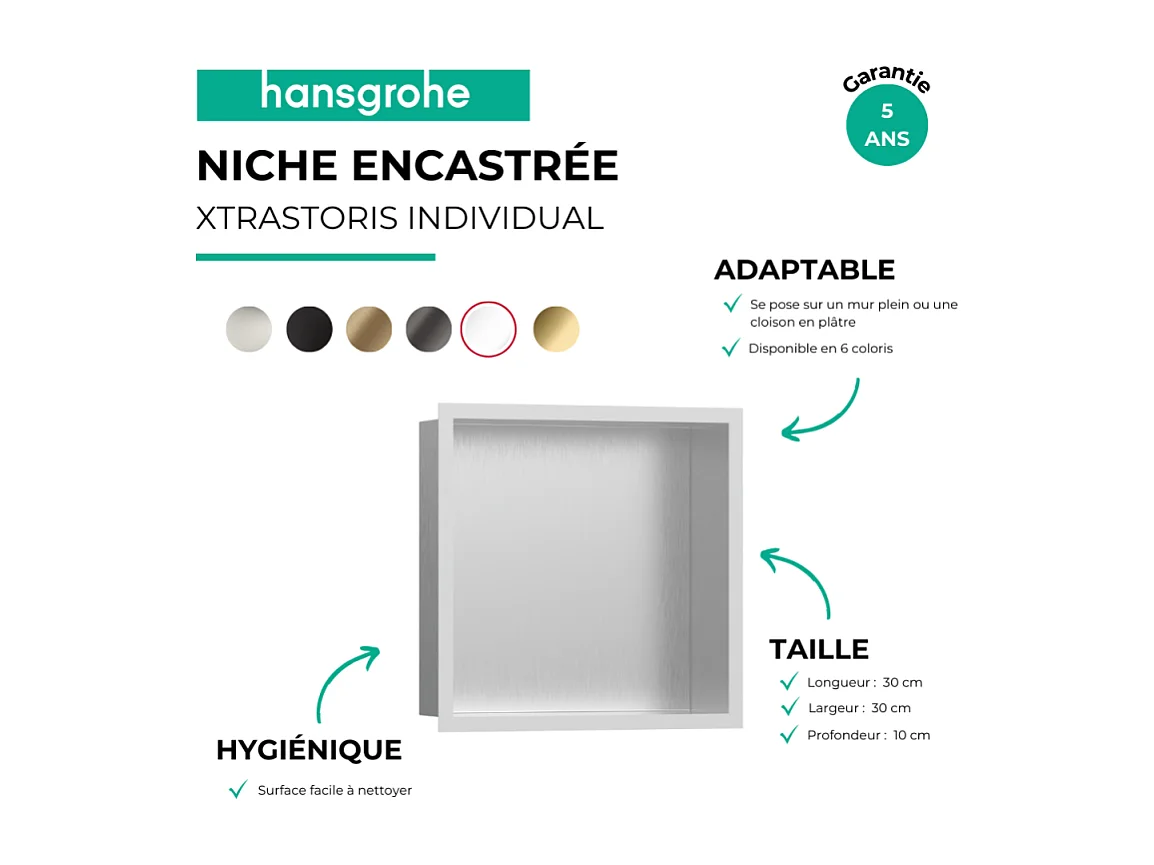 Niche murale fond acier HANSGROHE XtraStoris cadre blanc mat