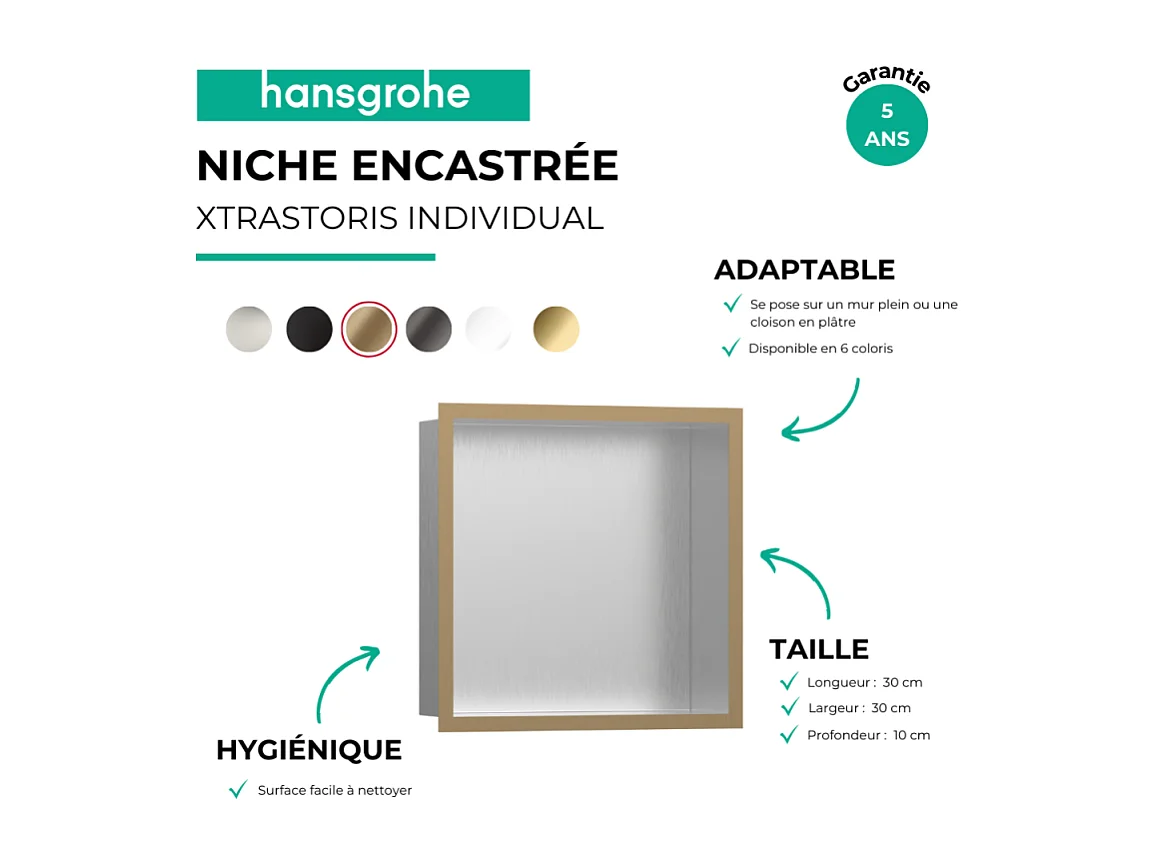 Niche murale fond acier HANSGROHE XtraStoris cadre bronze brossé