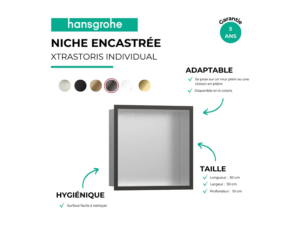 Niche murale fond acier HANSGROHE XtraStoris cadre noir chromé brossé