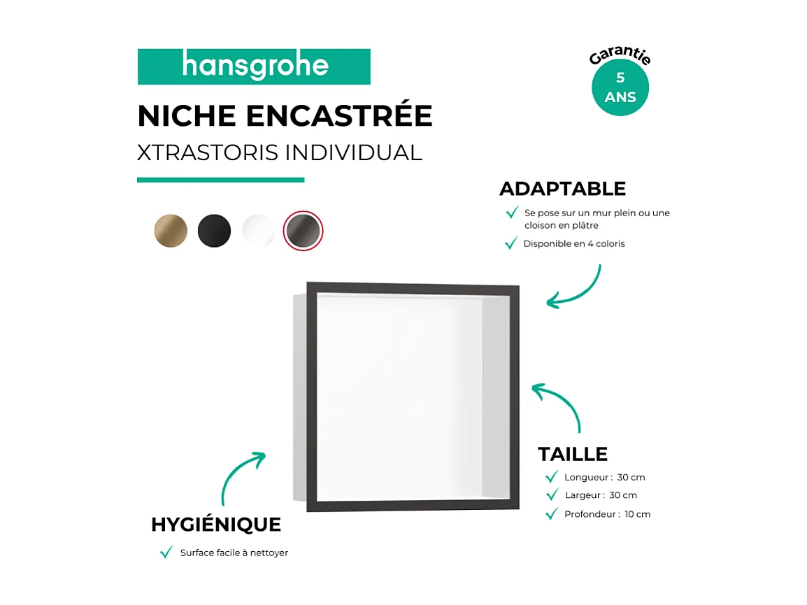 Niche murale fond blanc HANSGROHE XtraStoris cadre noir chromé brossé