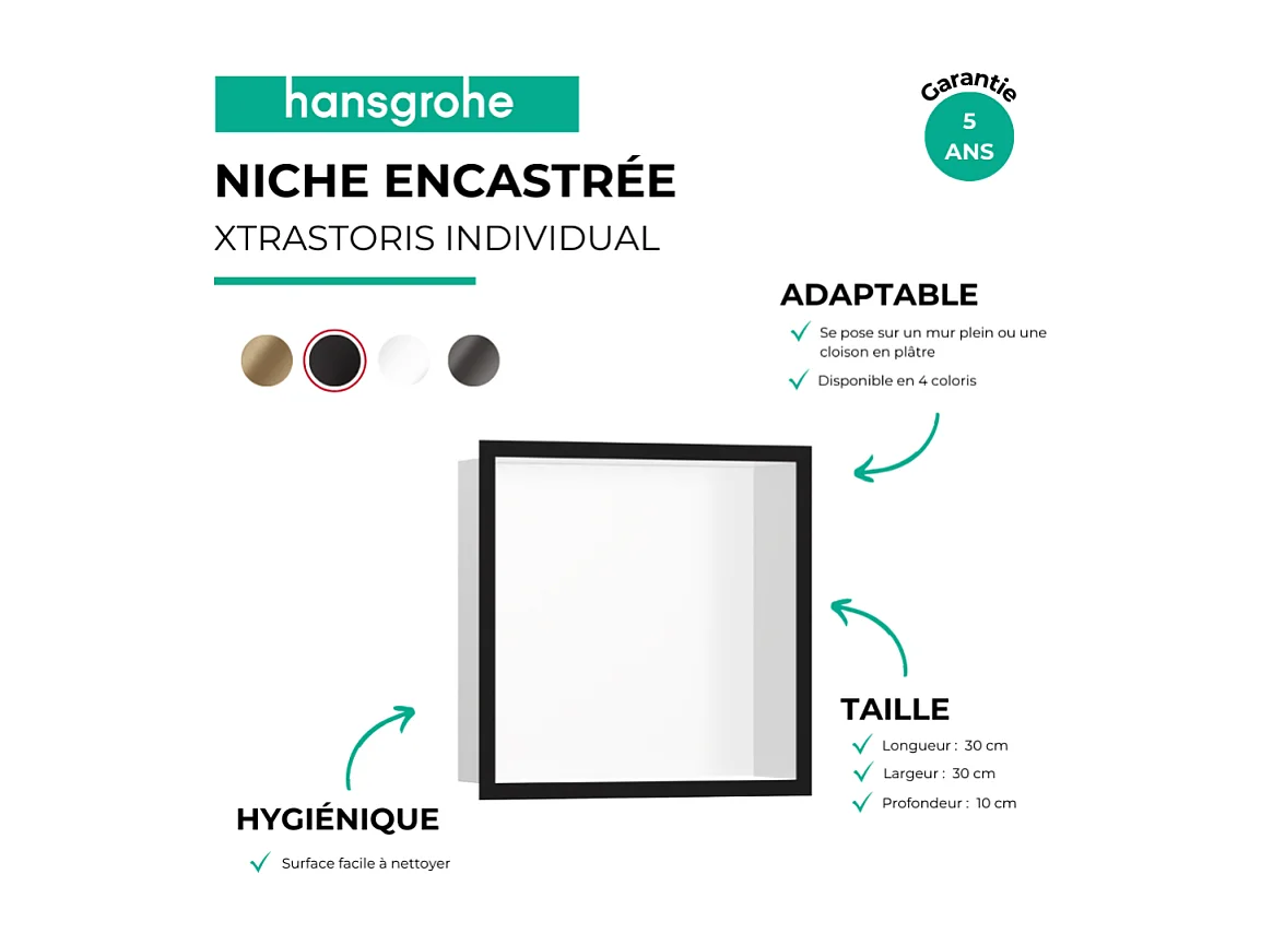 Niche murale fond blanc HANSGROHE XtraStoris cadre noir mat