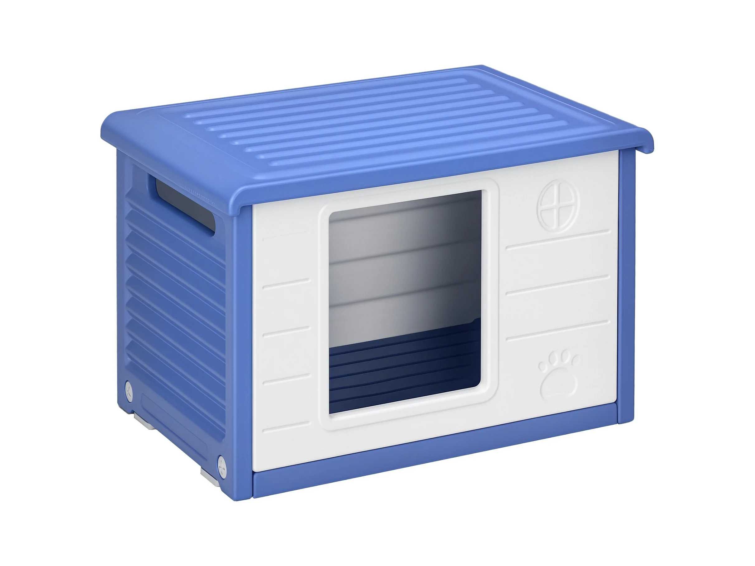 Niche pour chien design maisonnette - dim. 65L x 75l x 63H cm - PP bleu blanc