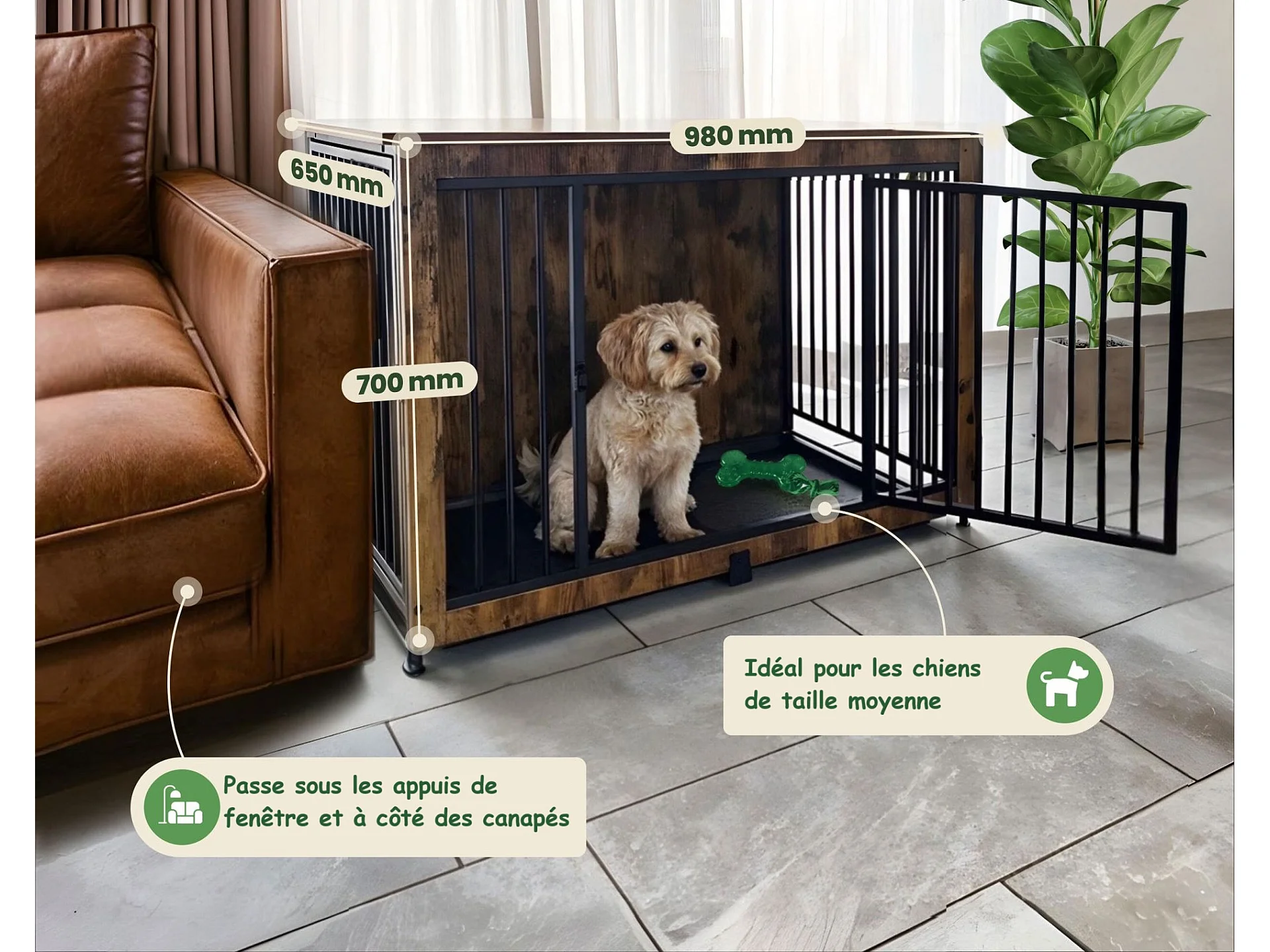 Niche pour chien intérieur 98x70x65cm cage pour chiots Max