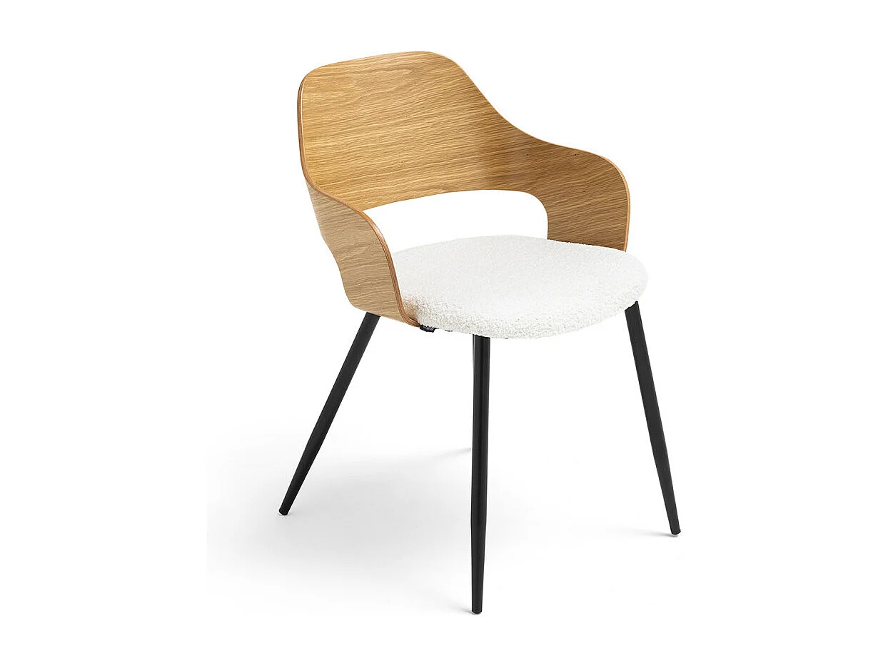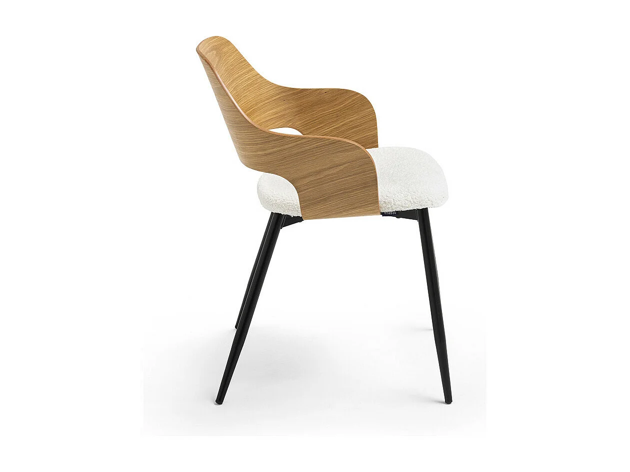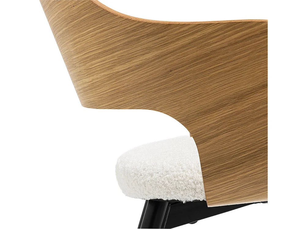 Nicole - Lot de 2 fauteuils de table en tissu bouclette, bois et métal : Couleur - Blanc