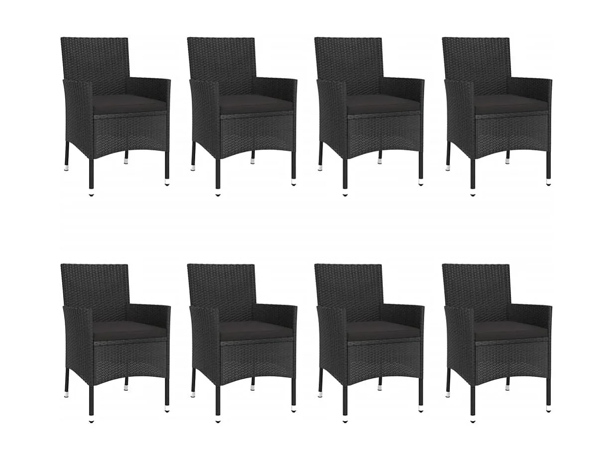 Niels-Jan Ensemble à manger jardin 9pcs et coussins noir résine tressée