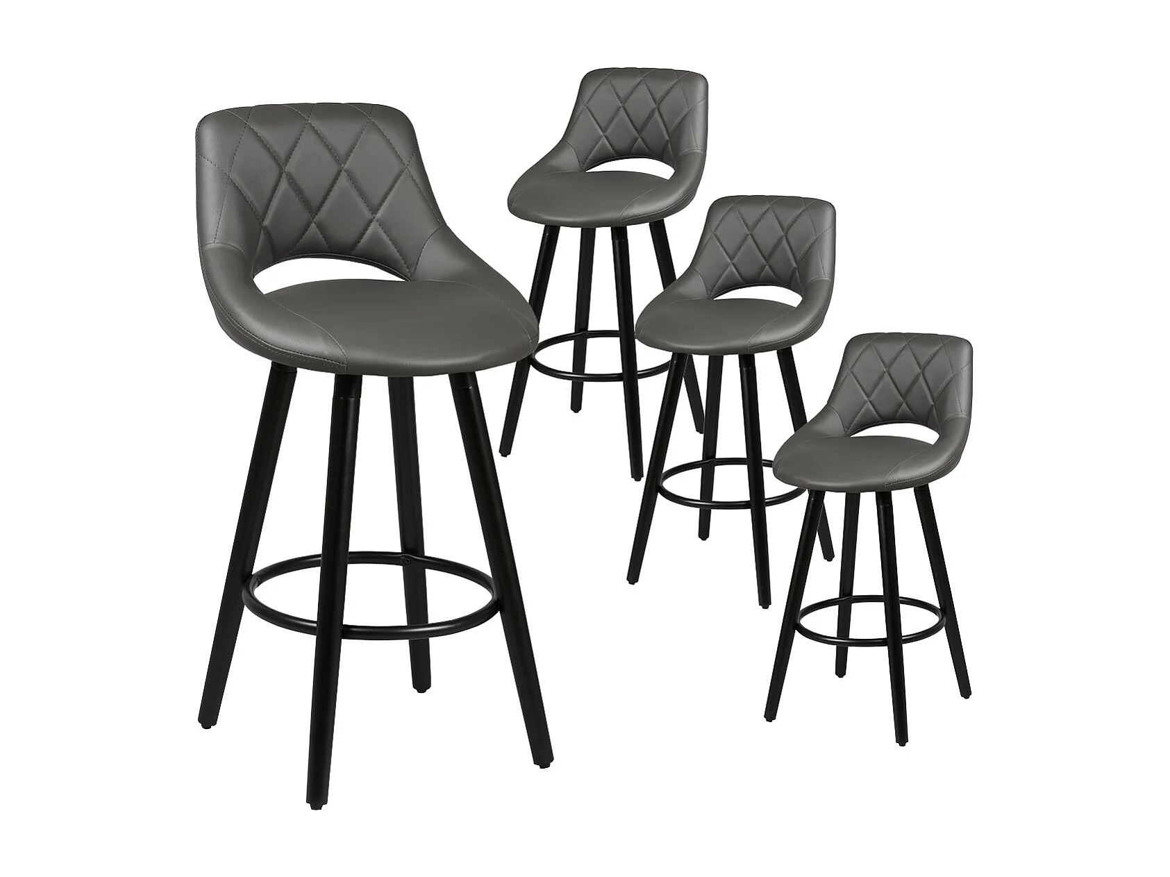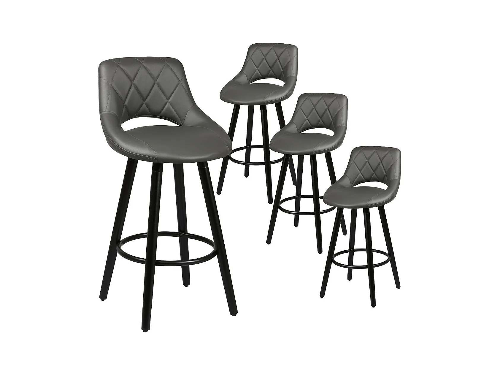 NIELS - Lot de 4 Tabourets Gris et Noirs