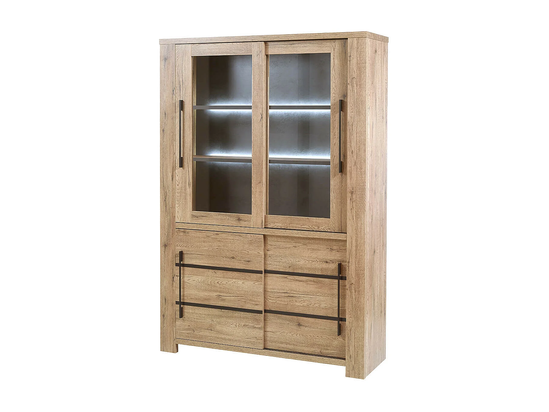 NILLA - Ensemble Buffet + Vitrine + Table 200cm Aspect Bois