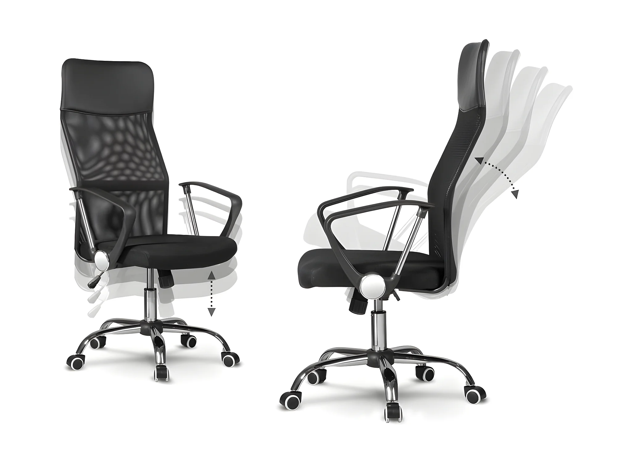 NIME - Fauteuil ergonomique avec accoudoirs - Hauteur ajustable - Dossier inclinable - En maille aérée