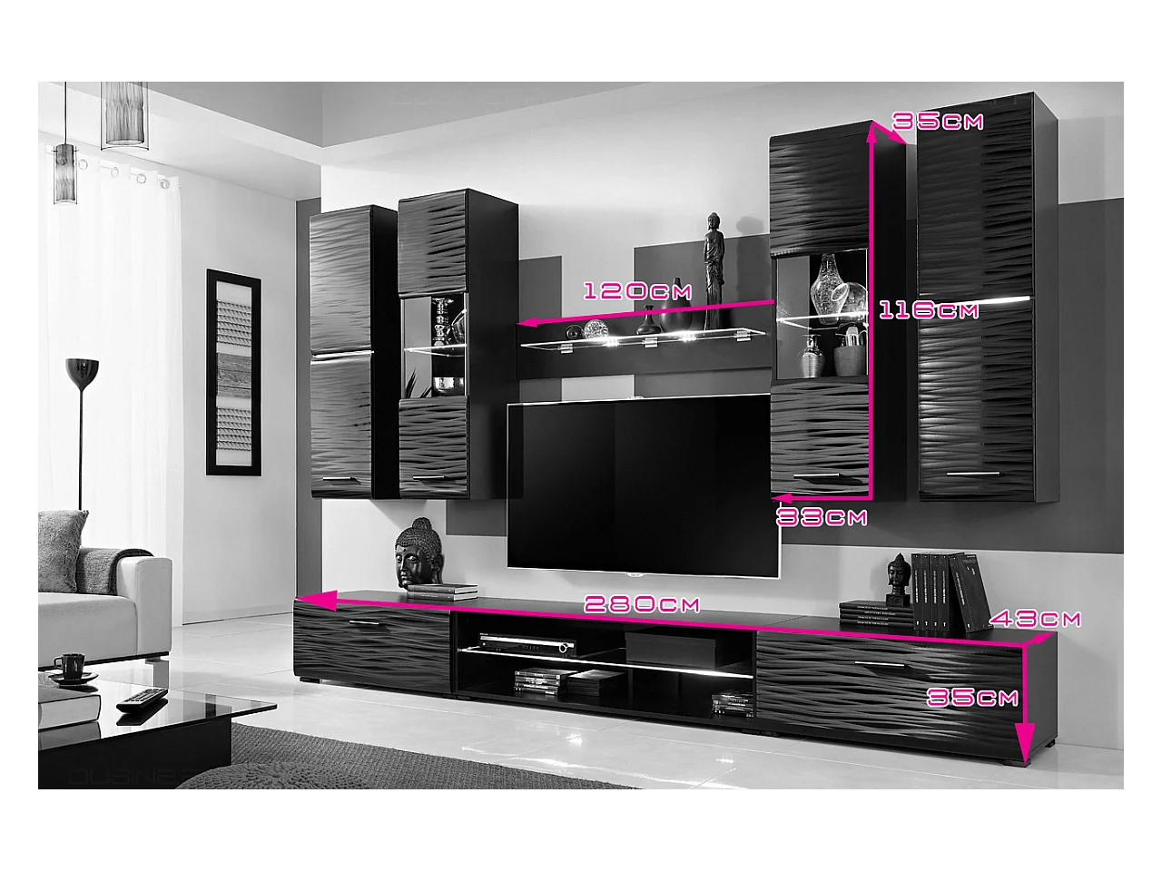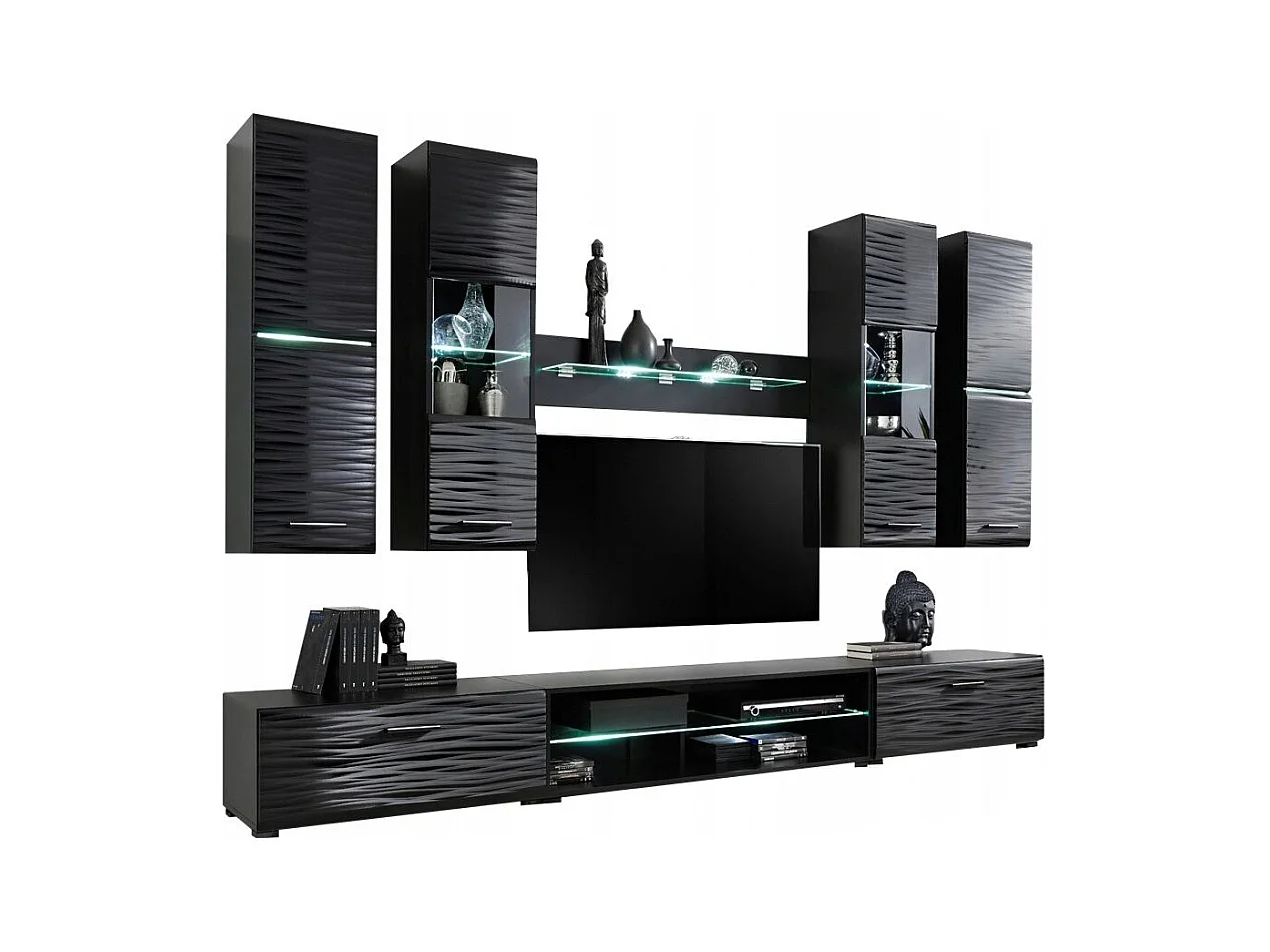 NINJA Ensemble meuble TV EFFET 3D LED 280 cm pour Box, Console et HIFI