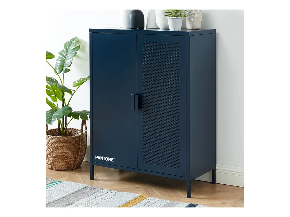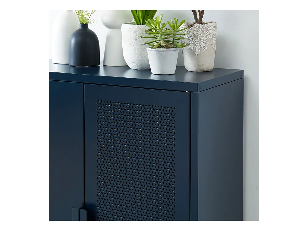 Nino - Buffet haut 2 portes en métal PANTONE H100cm - Bleu nuit