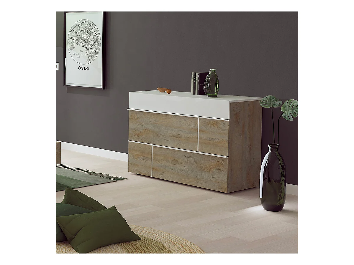 NINO LIGHT - Lit 160x200cm avec Leds et Chevets à Poser + Commode