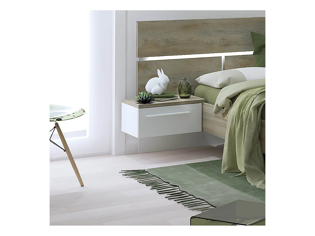 NINO LIGHT - Lit 160x200cm avec Leds et Chevets Suspendus + Armoire 3P