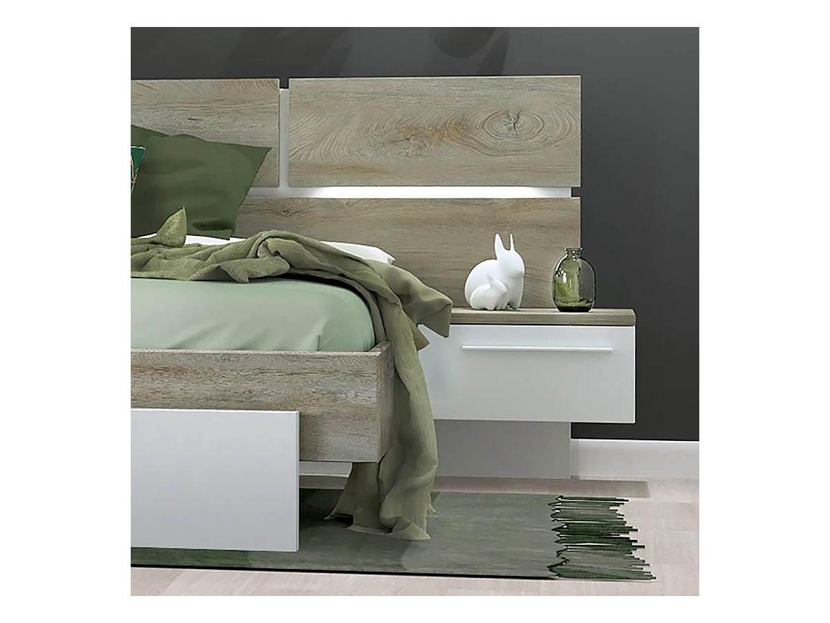 NINO LIGHT - Lit 160x200cm Effet Bois avec Leds + Chevets Suspendus