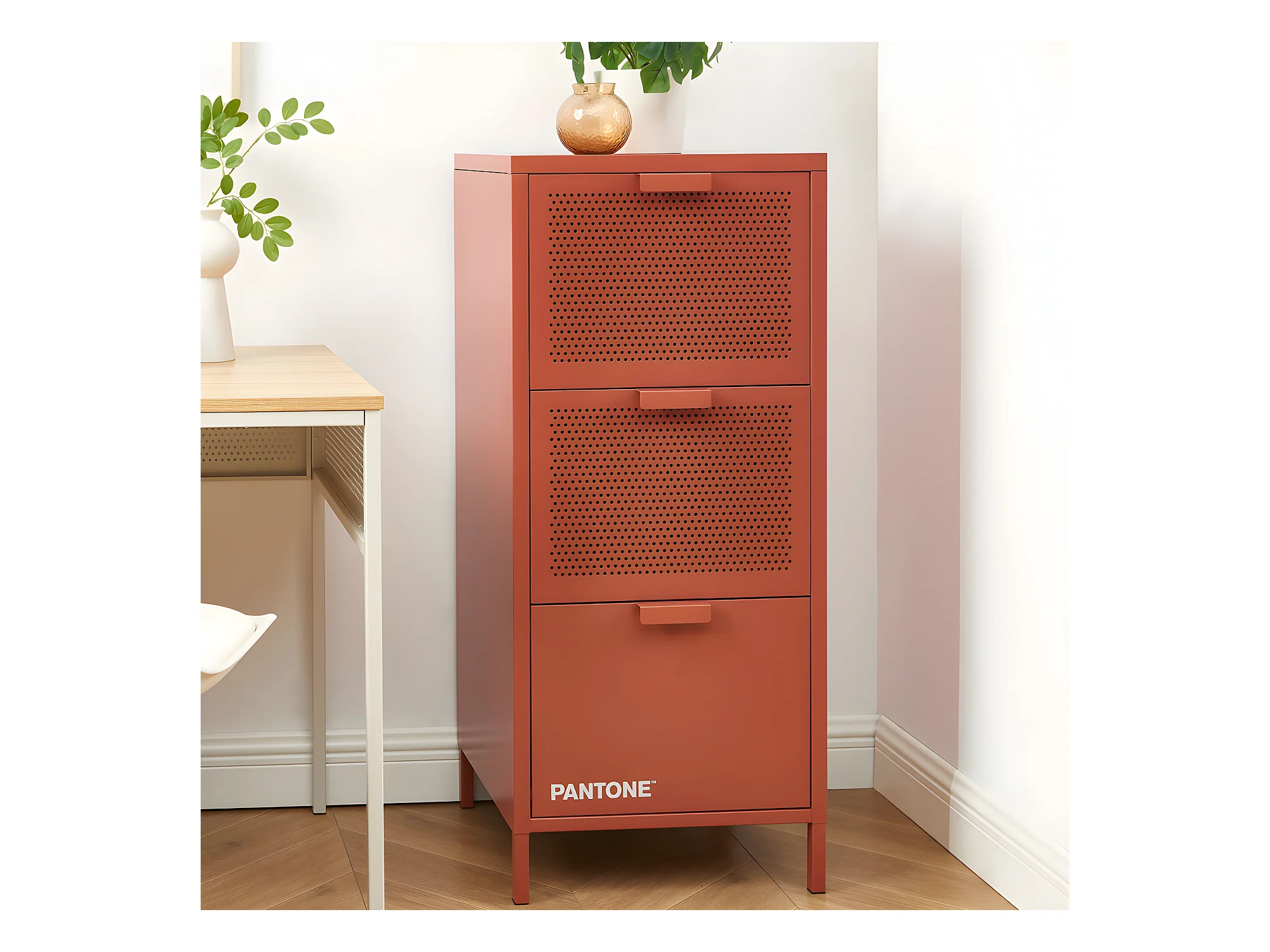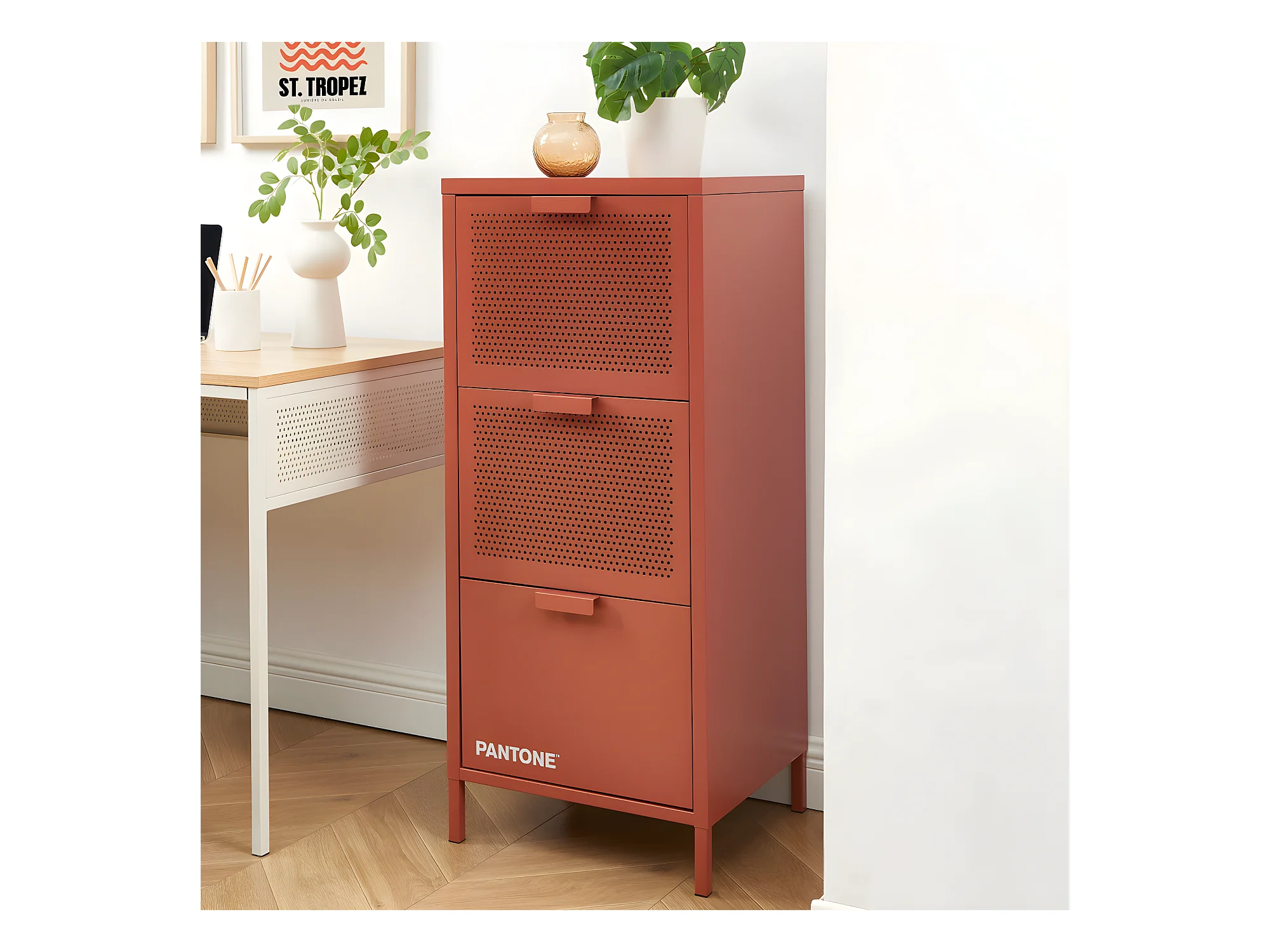Nino - Petit meuble de rangement 3 tiroirs en métal PANTONE H105cm - Terracotta