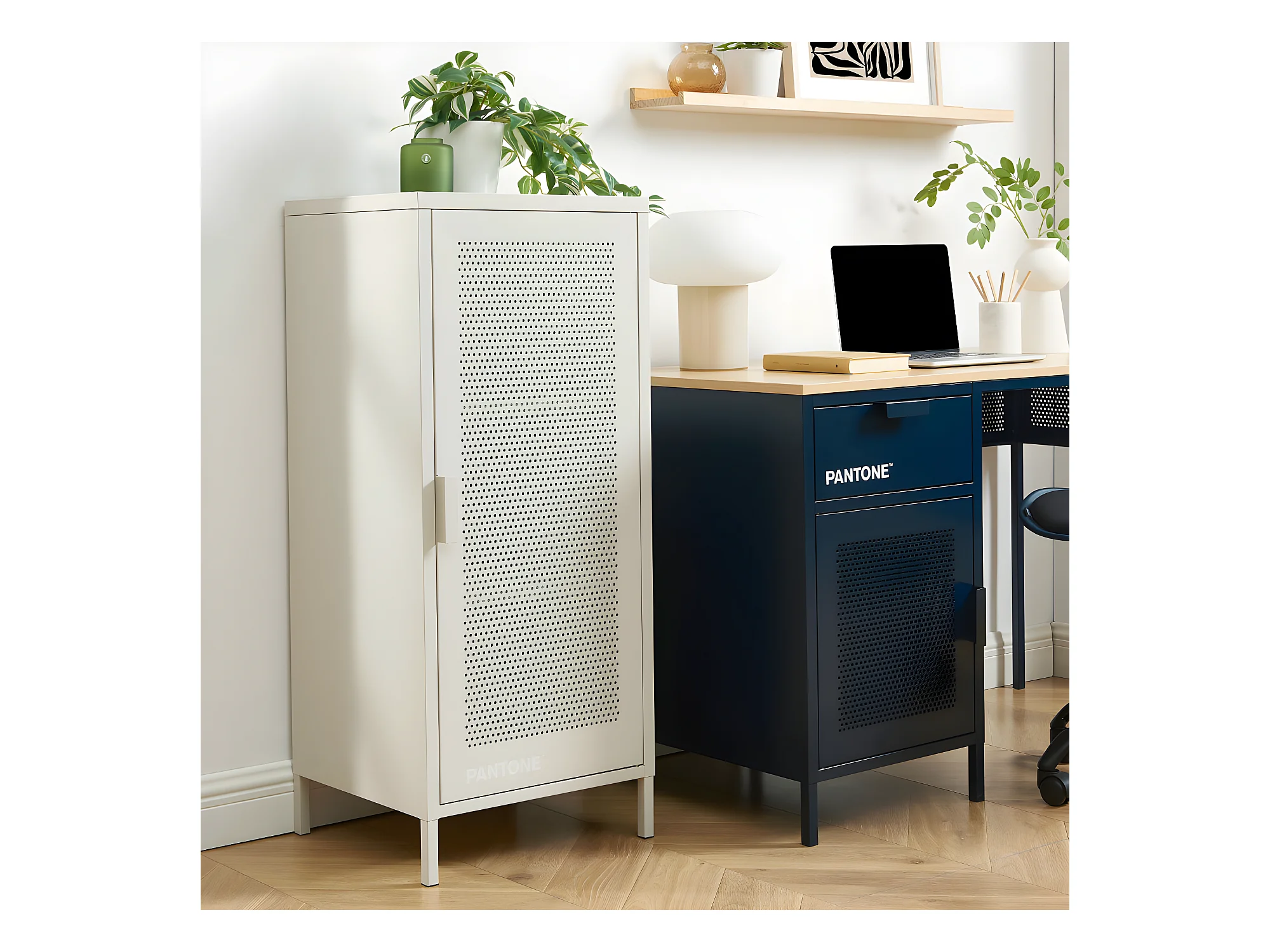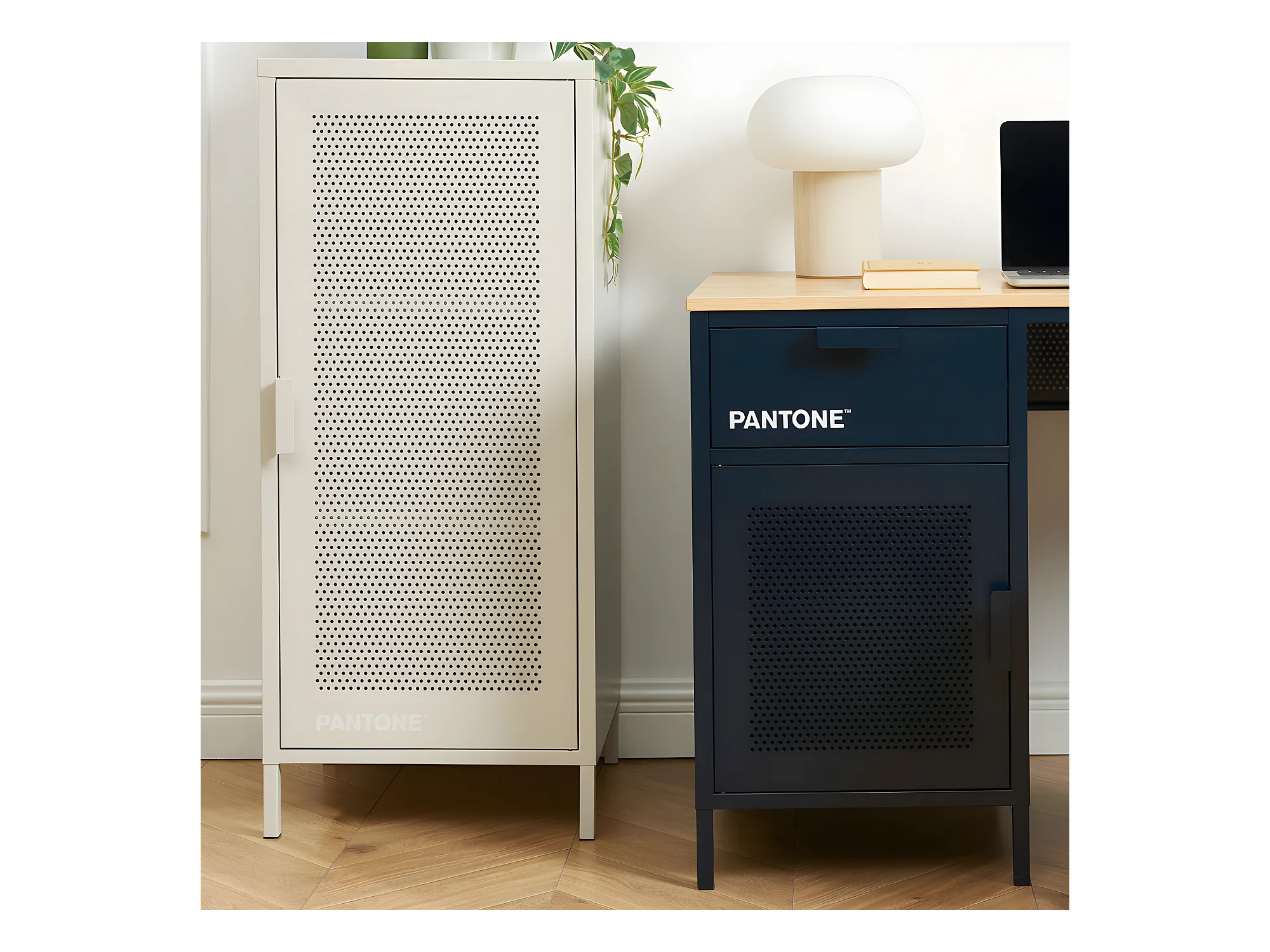 Nino - Petit meuble de rangement en métal PANTONE H105cm - Beige