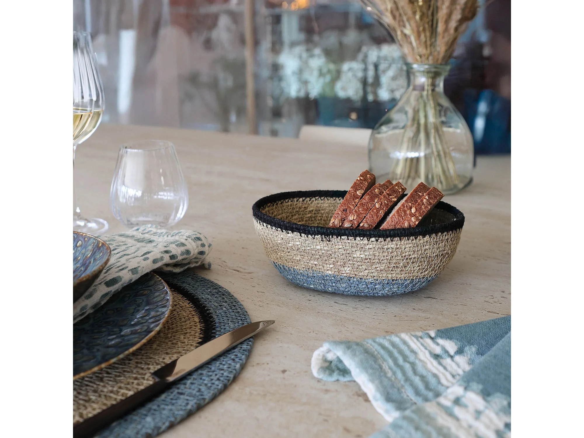 No Name - Panier Ovale En Jonc De Mer Diam 20x14xht7cm Naturel Et Bleu Dune