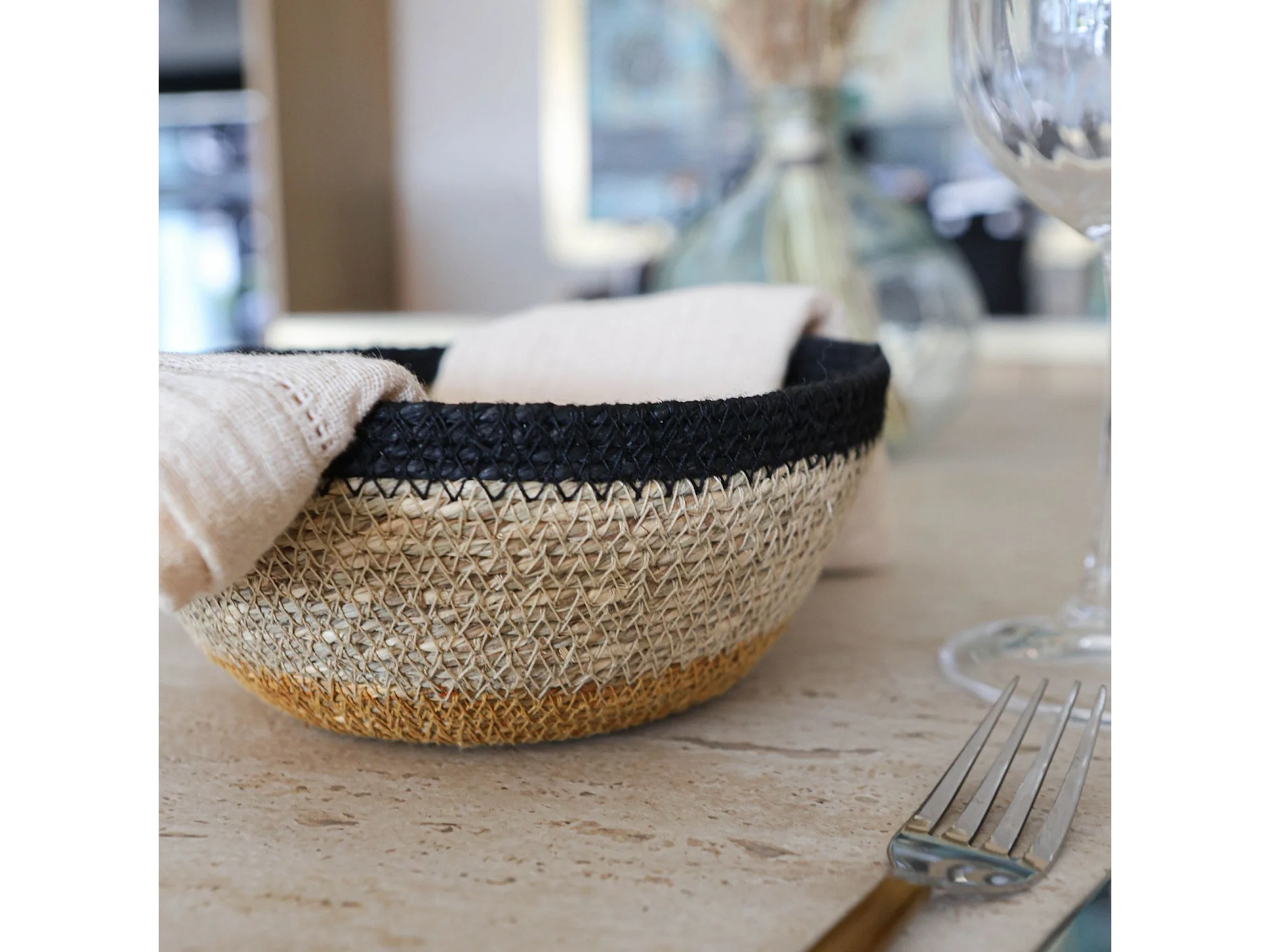 No Name - Panier Rond D18cm En Jonc De Mer Naturel Et Liseret Noir Dune