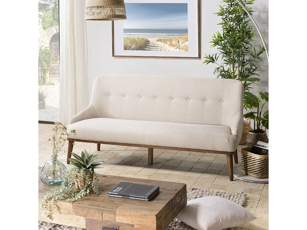 NELSON - Canapé beige 2 places pieds en bois NELSON