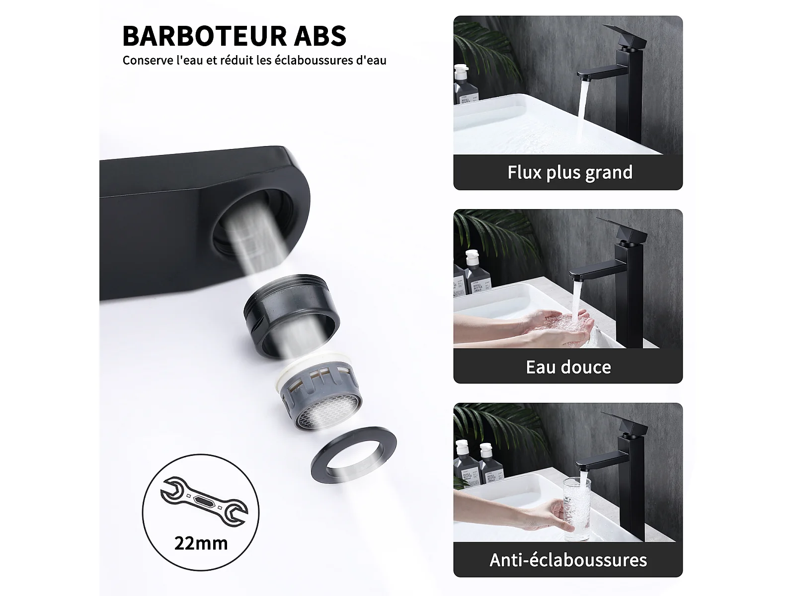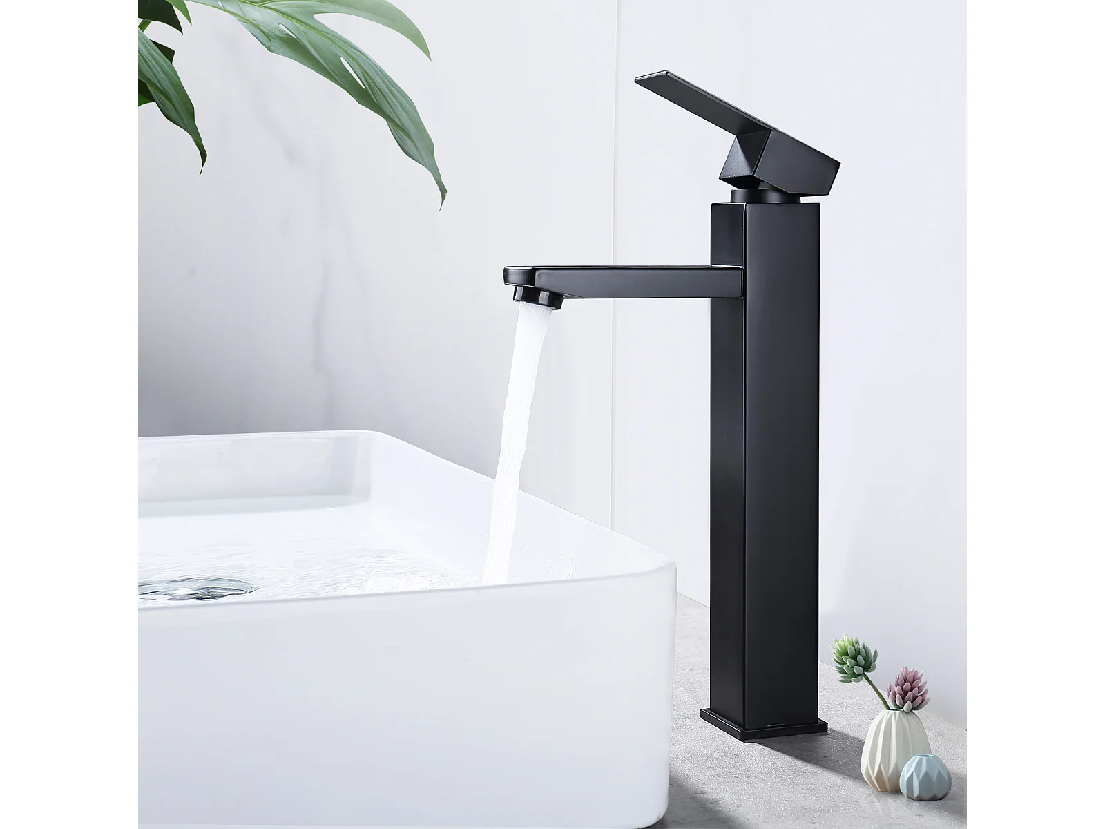 Noir Robinet Salle de Bain Haut Mitigeur Salle Bain pour Vasque Robinet de Lavabo avec Poignée Carré Design Moderne