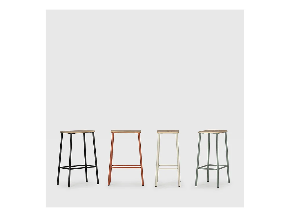 Noki - Lot de 2 tabourets de bar en bois et métal H65cm - Beige