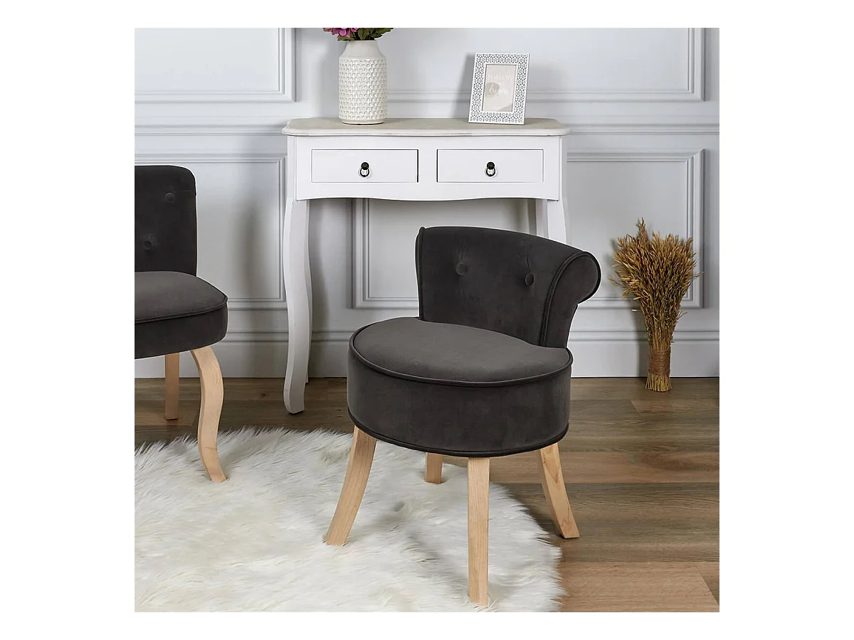 NORA - Tabouret Avec Dossier Capitonné Velours Anthracite