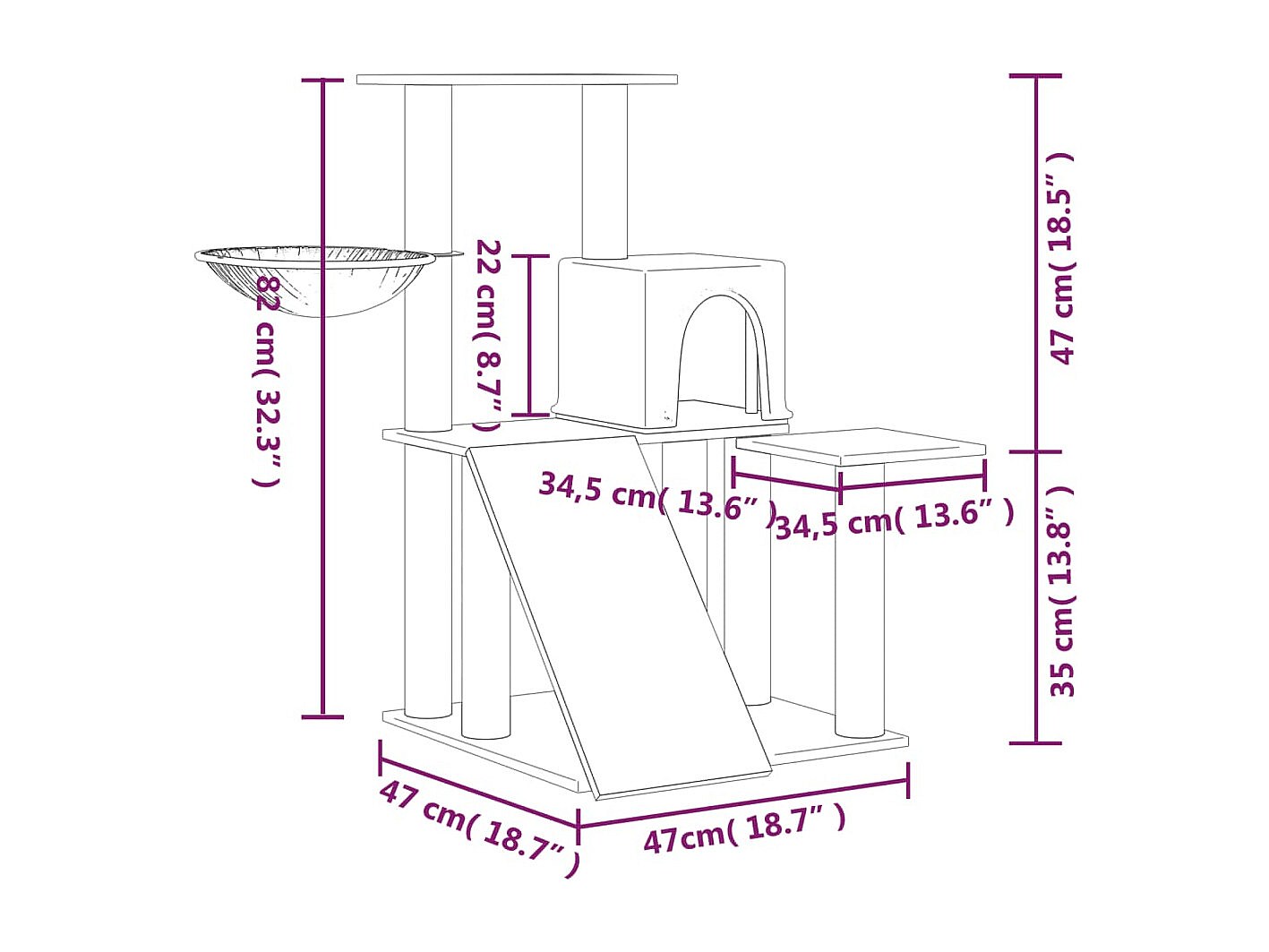 Arbre à chat avec griffoirs en sisal Gris foncé 82 cm RG3Q34483