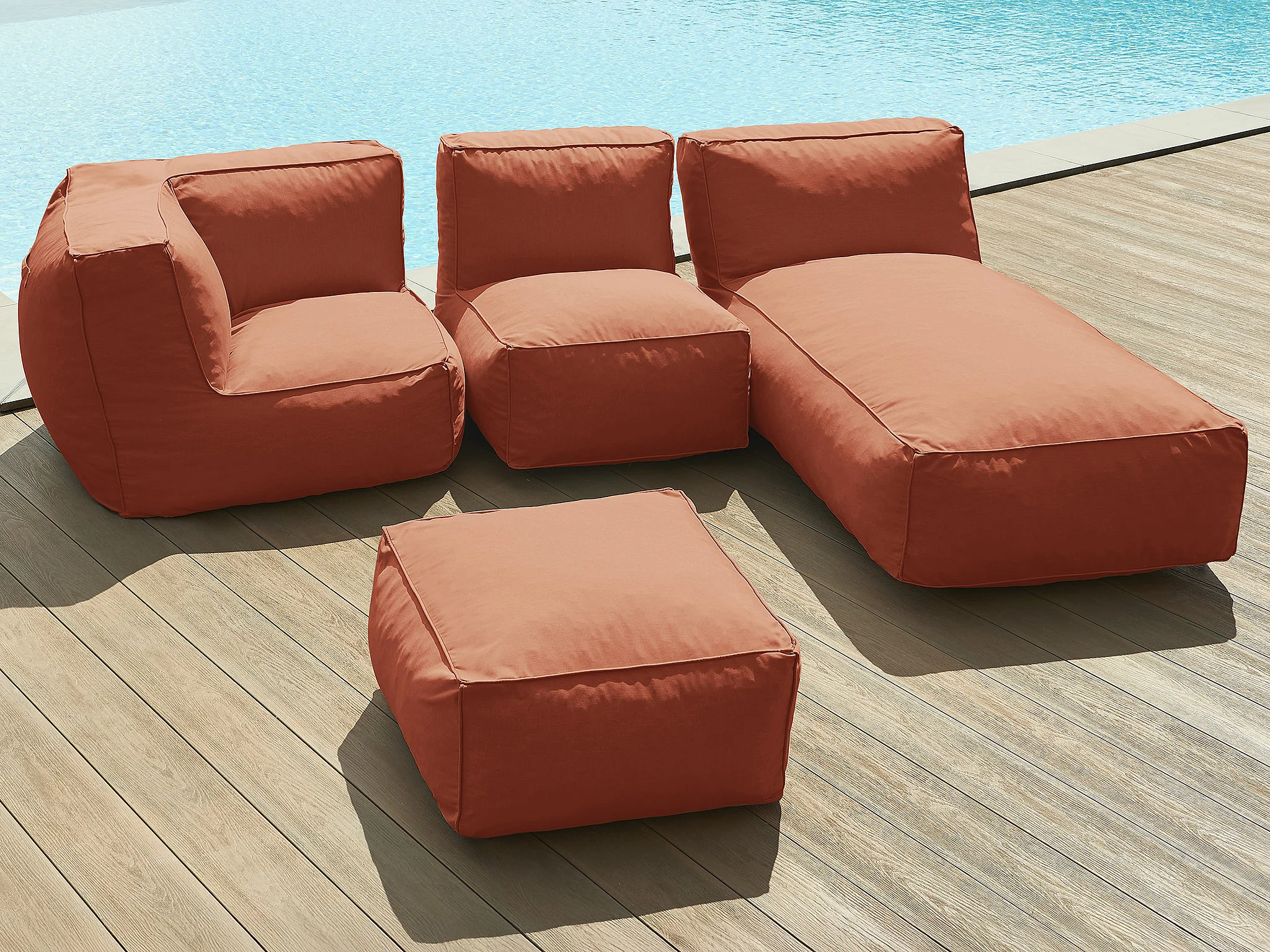 Salon de jardin en tissu 4 places : 1 fauteuil, 1 angle, 1 méridienne et 1 pouf - Terracotta - NOUMARA de MYLIA