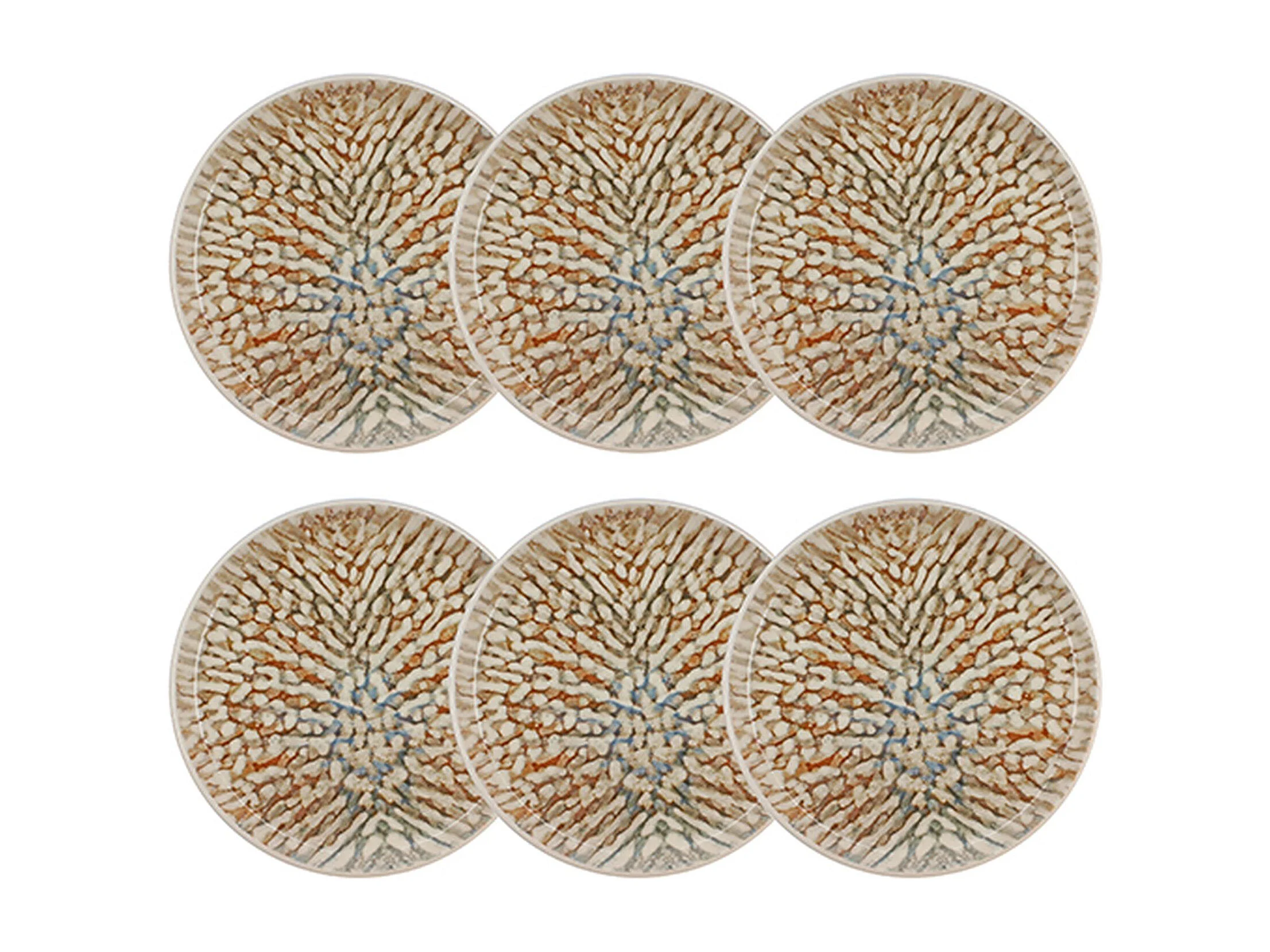 Novastyl - Lot 6 Assiettes Desserts Ambre 20cm En Gres Marron Et Beige