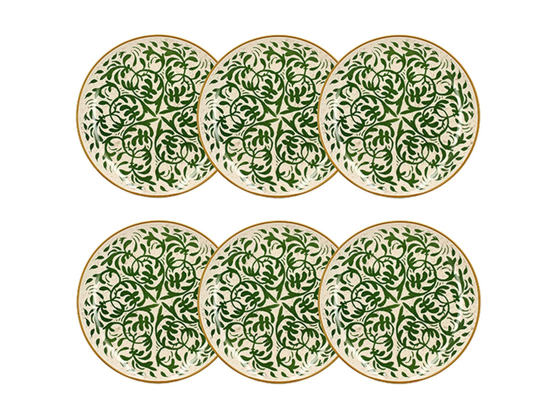 Set de 6 assiettes plates en céramique verte motif mandala (Ø27 cm) - AKKA