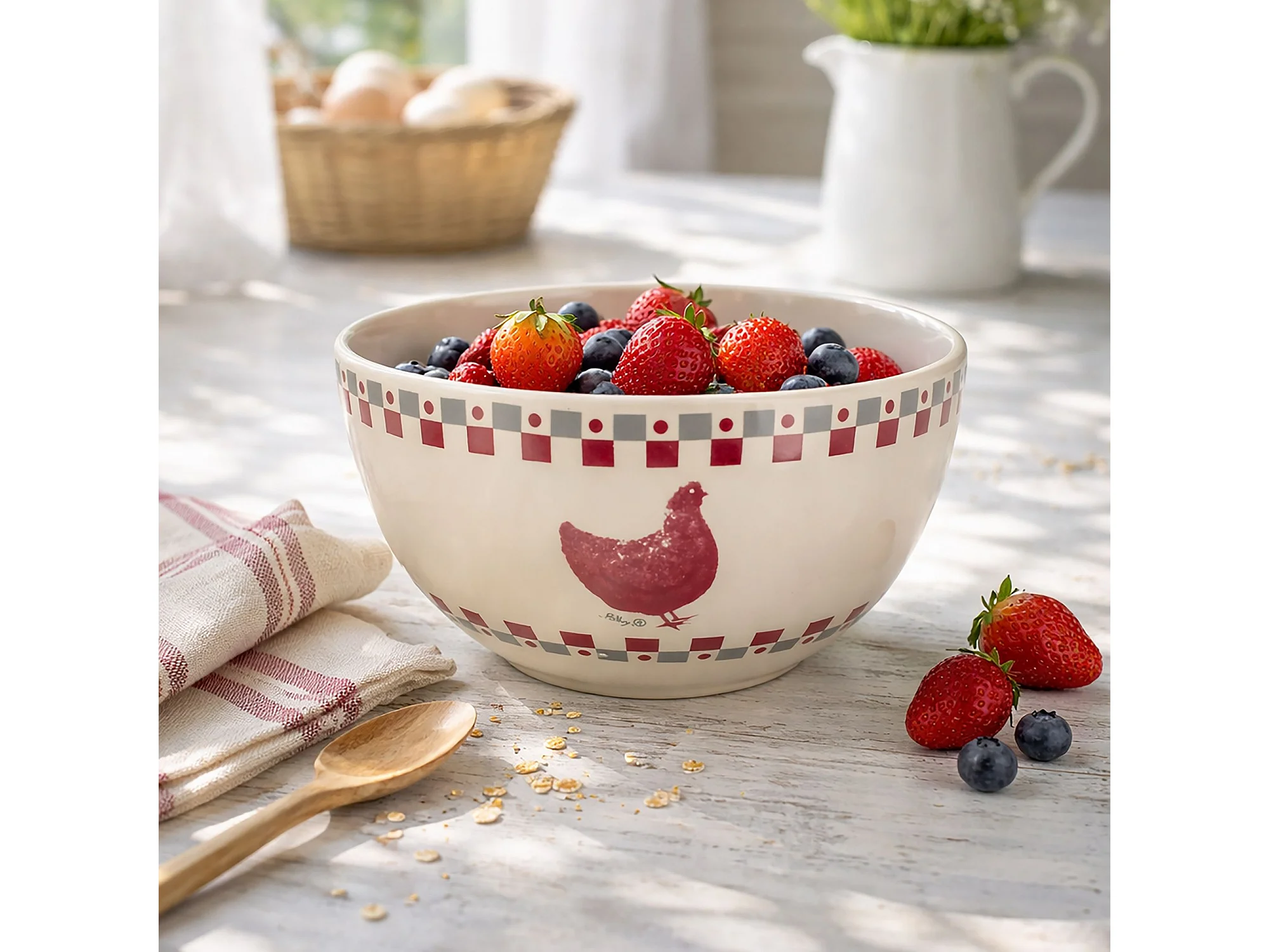 Novastyl - Lot 6 Jumbo Gallina 45cl En Gres Gris Et Rouge