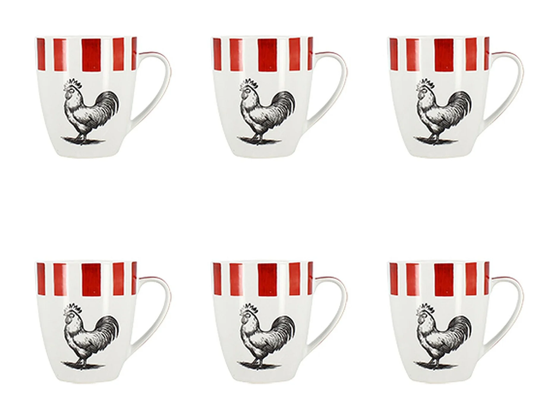 Novastyl - Lot 6 Mugs Cocorico 35cl En Porcelaine Rouge Et Blanc