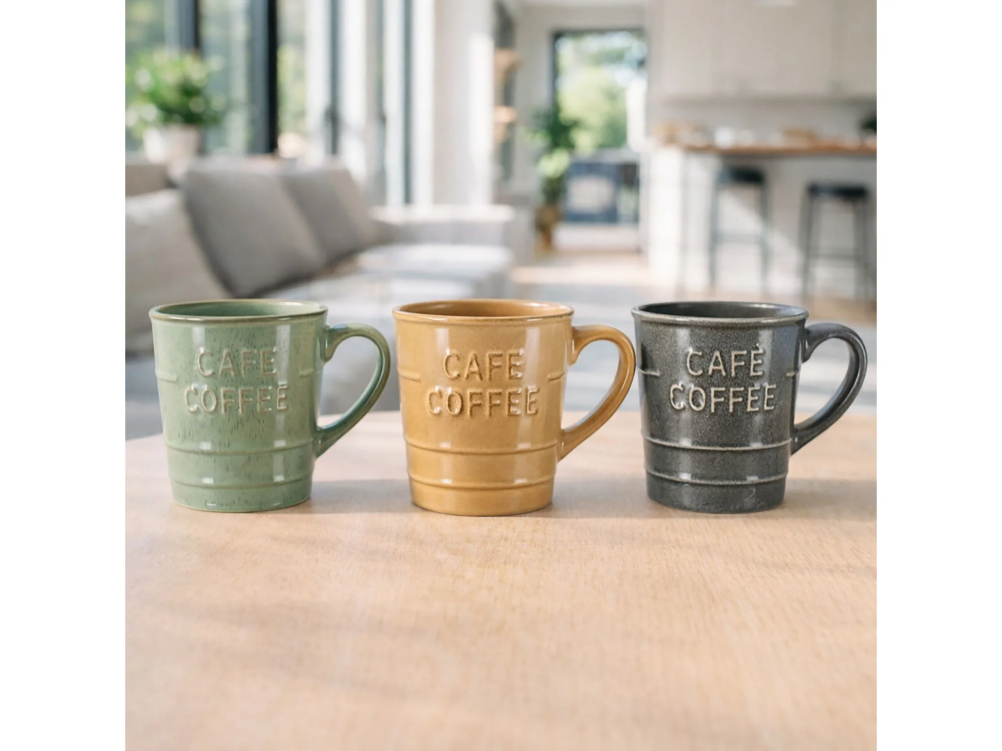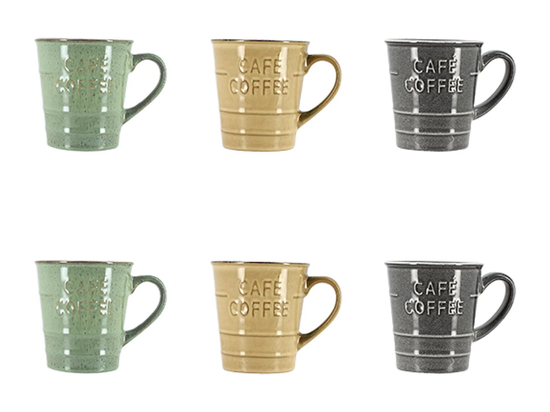 Novastyl - Lot 6 Mugs Coffee Time 21cl En Gres 3 Couleurs Assorties