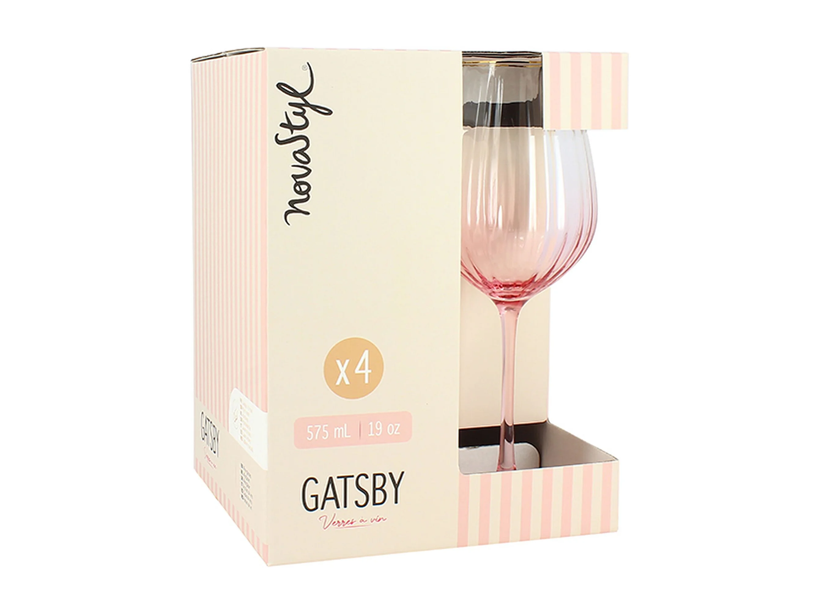 Novastyl - Lot De 4 Verres A Pied Gatsby 57.5cl En Verre Rose