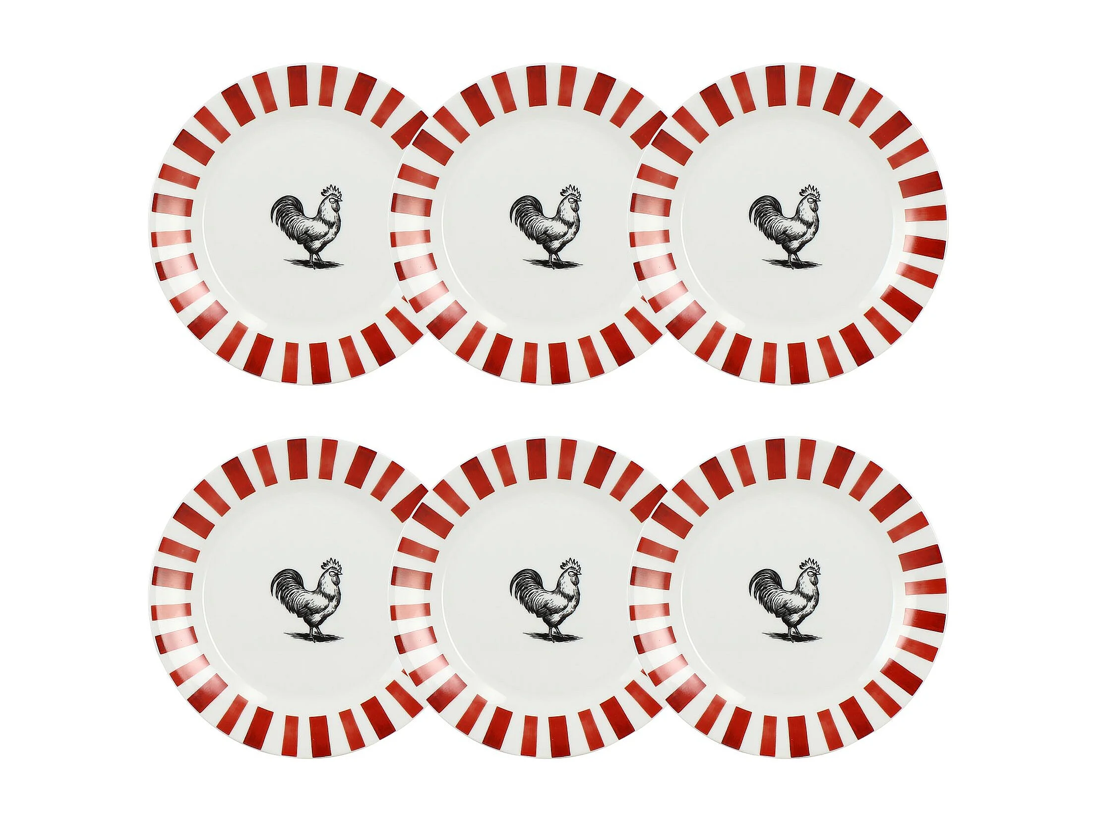 Novastyl - Lot6 Assiettes A Dessert Cocorico 19cm En Porcelaine Rouge Blanc