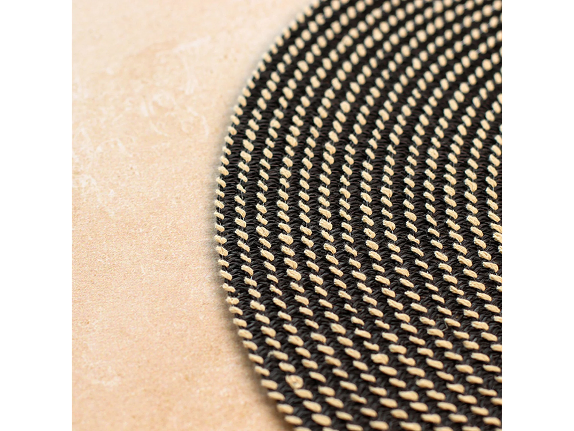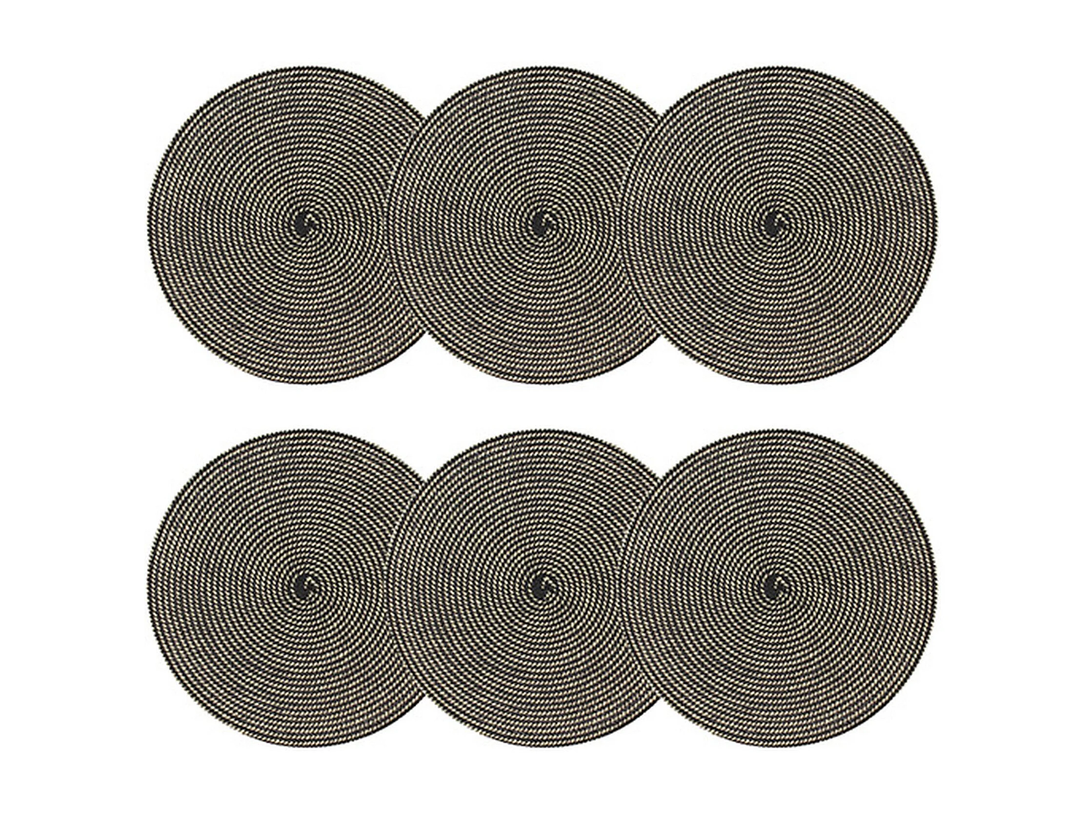 Novastyl - Lot 6 Sets De Table Tissé Rond 36cm En Papier Et Coton Naturel Et Noir
