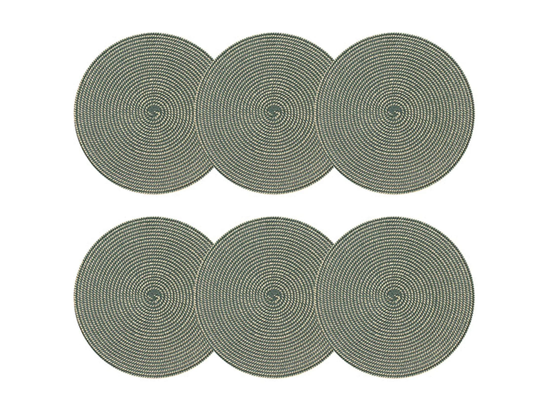 Novastyl - Lot 6 Sets De Table Tisse Rond 36cm En Papier Et Coton Naturel Et Vert
