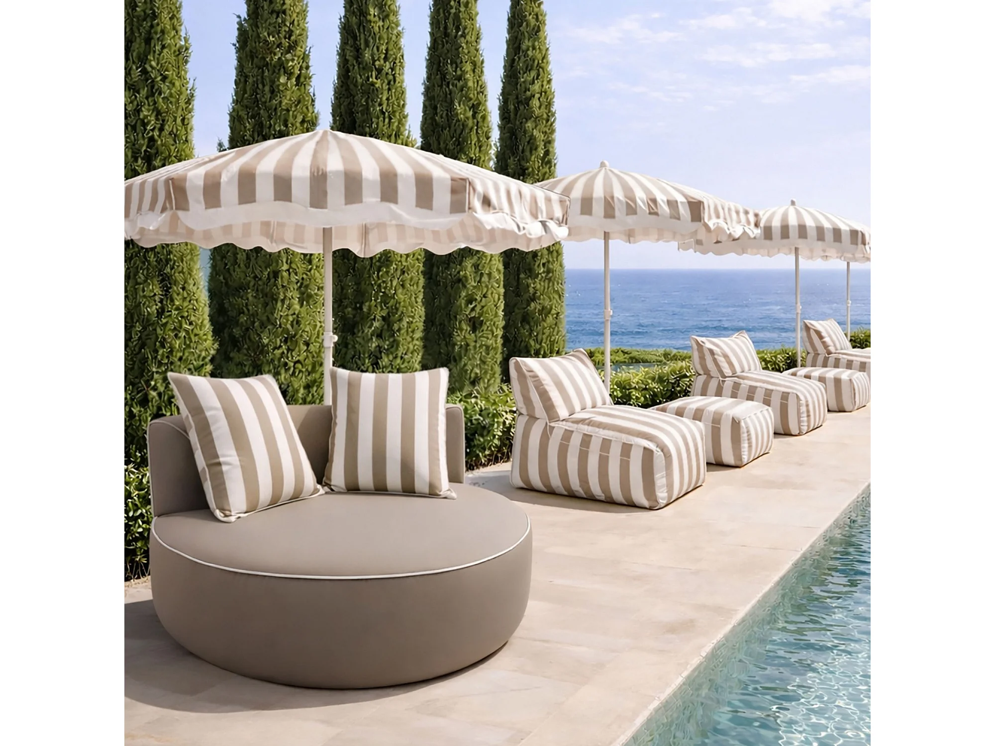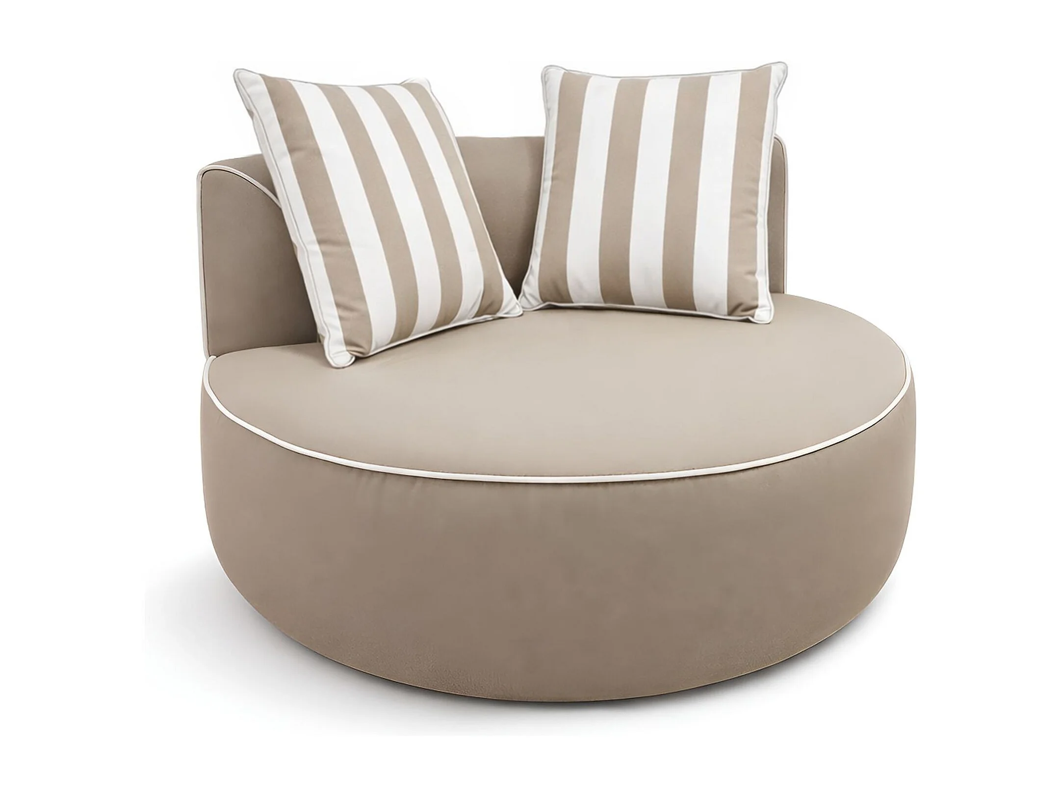 Now's Home - Fauteuil Extérieur Rond Compresse Tissu Taupe Avec Deux Coussins Nino