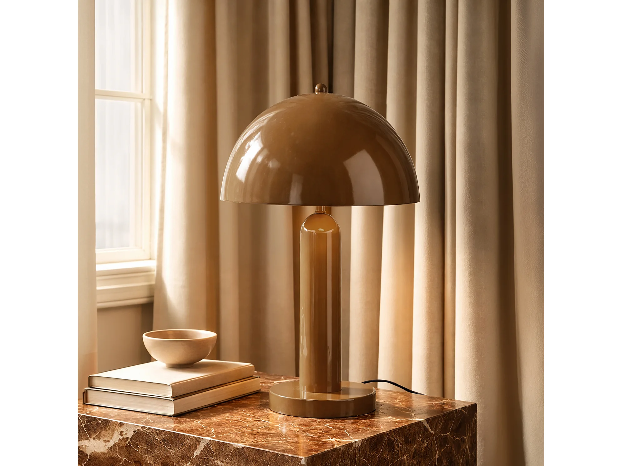 Now's Home - Lampe à Poser En Métal Moka Brillant 30x30x46cm Kyra