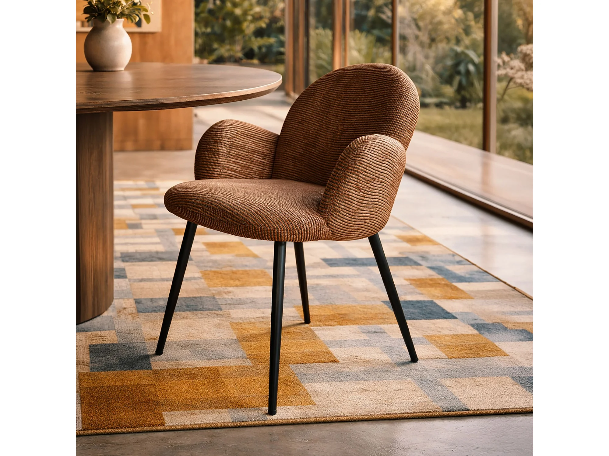 Now's Home - Lot 2 Fauteuil De Table Métal Noir Tissu Tweed Terracotta Ginette