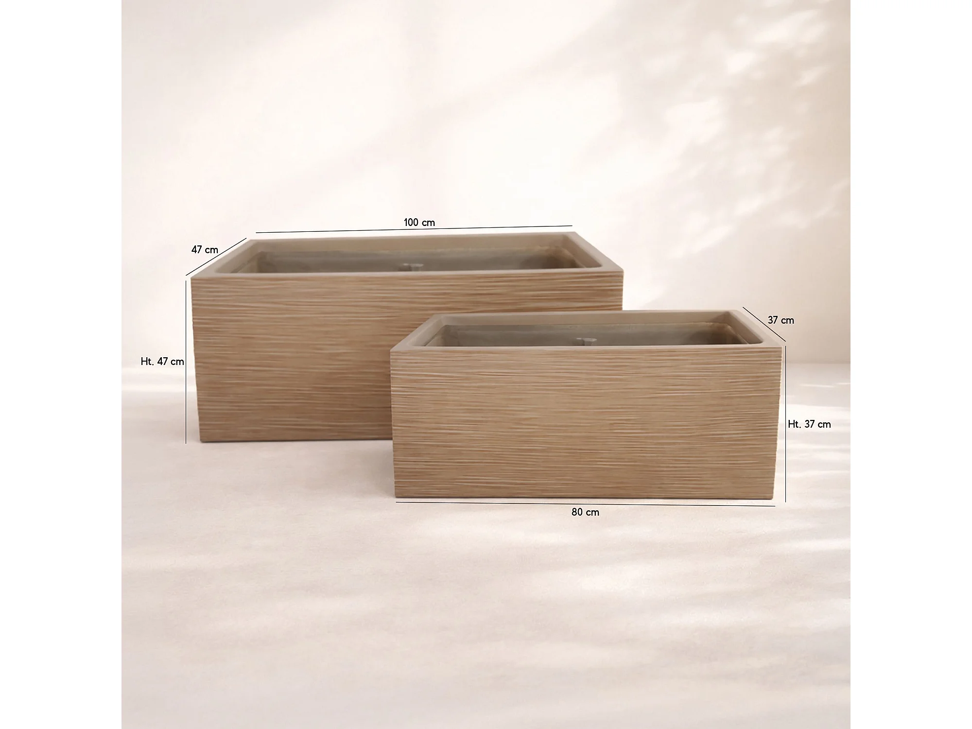Now's Home - Set De 2 Pots Rectangles En Fibre D'argile Terre Cuite Ht37/47cm Comporta