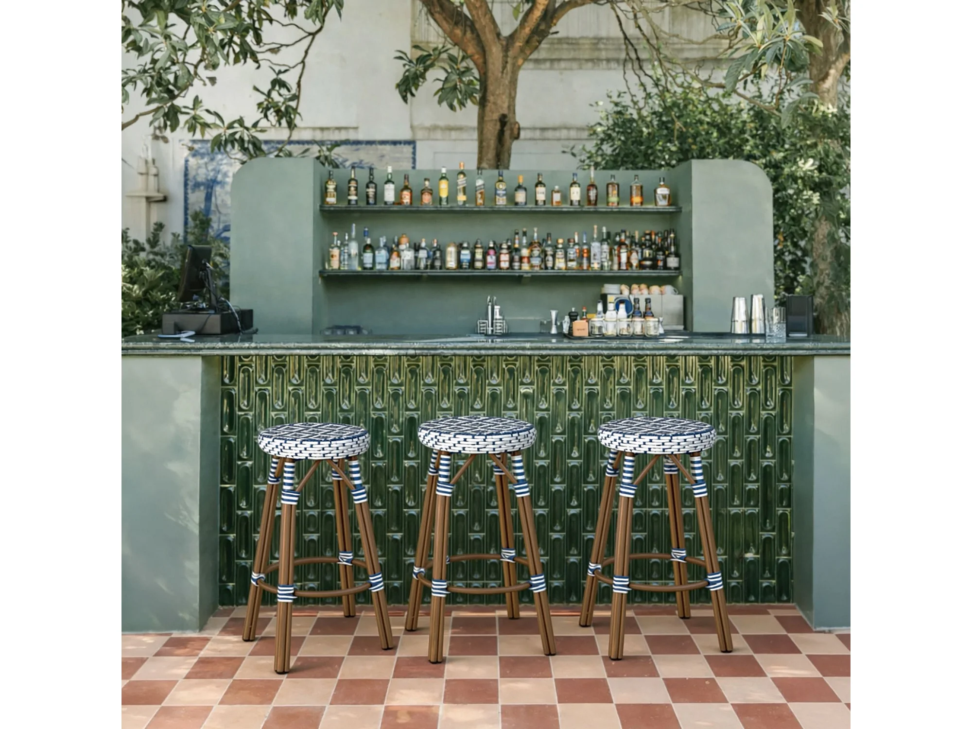 Now's Home - Tabourets De Bar En Textilene Bleu Alu Effet Rotin D46xht74cm Scala