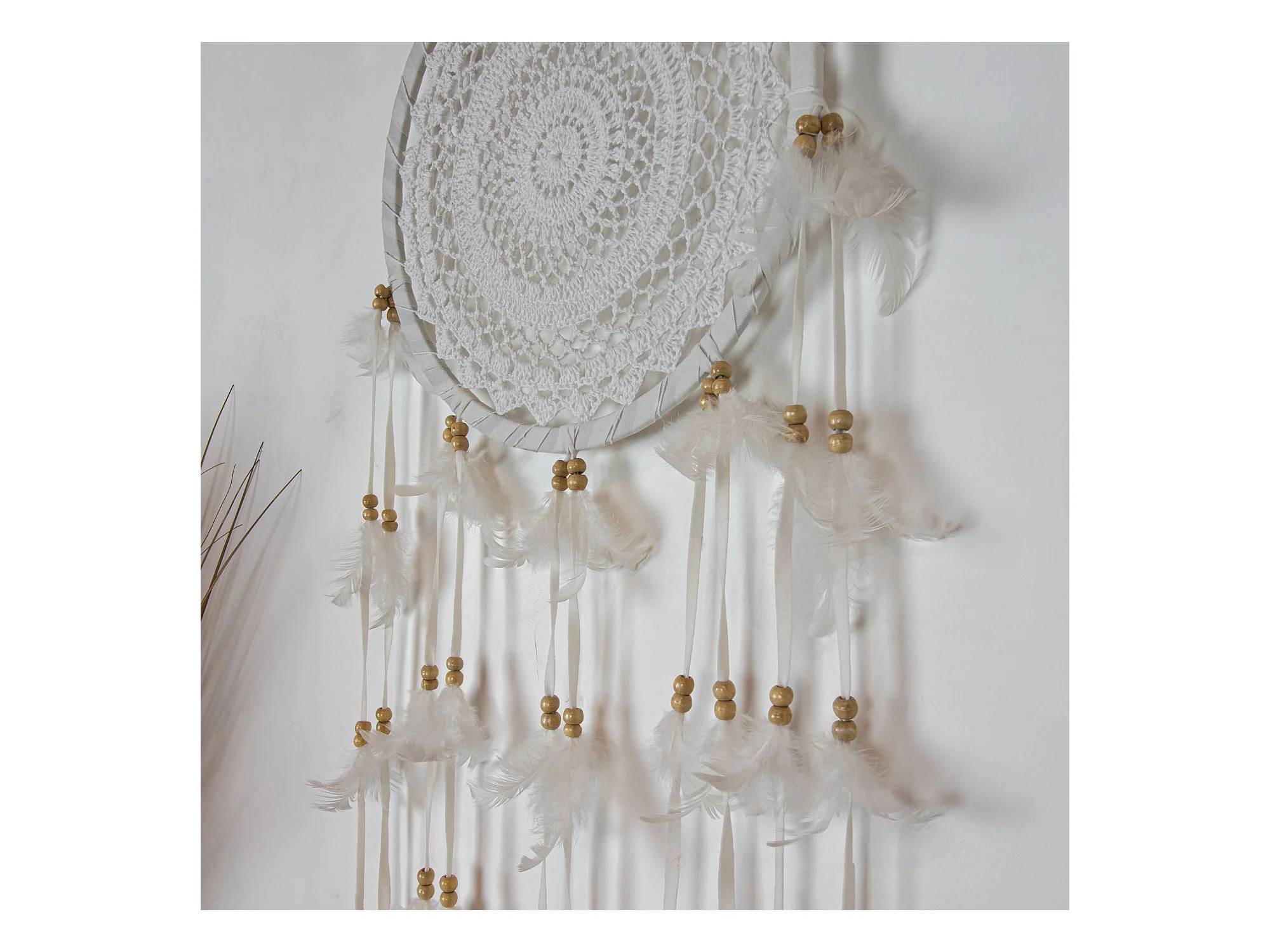 Now's Home - Attrape Reve En Plumes Et Coton Blanc O33x100cm Pokana