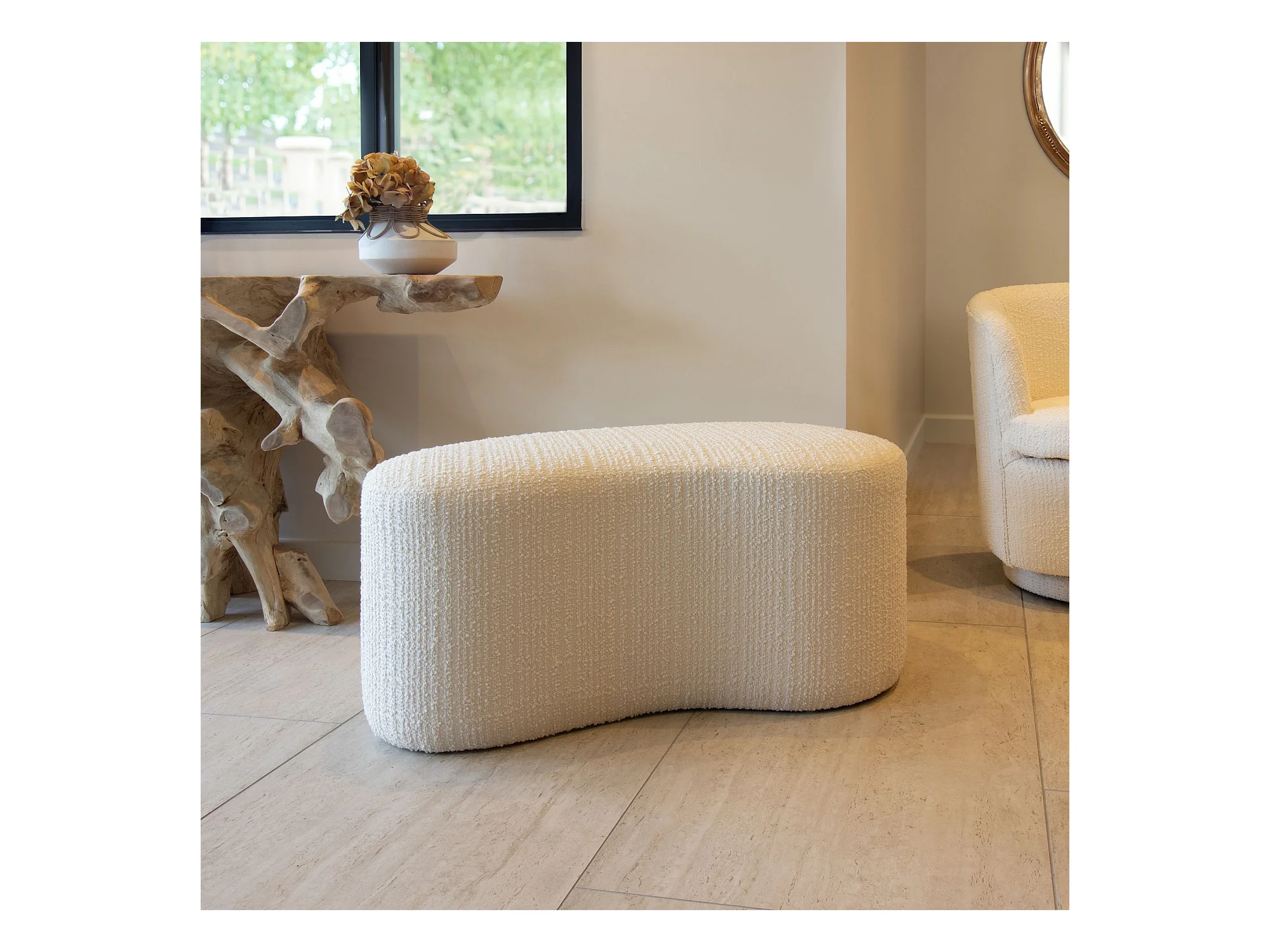 Now's Home - Banc Incurve Bouclette Ecru Sturcture Bois 101x56x47cm Malo