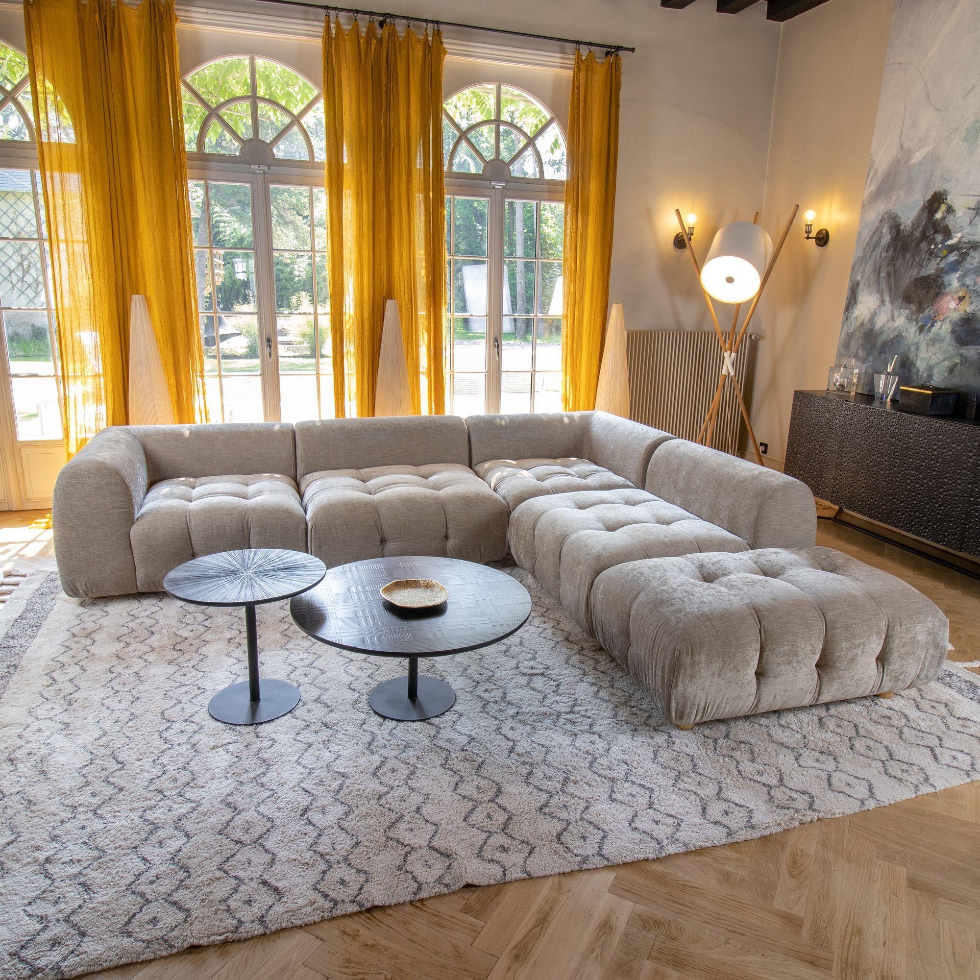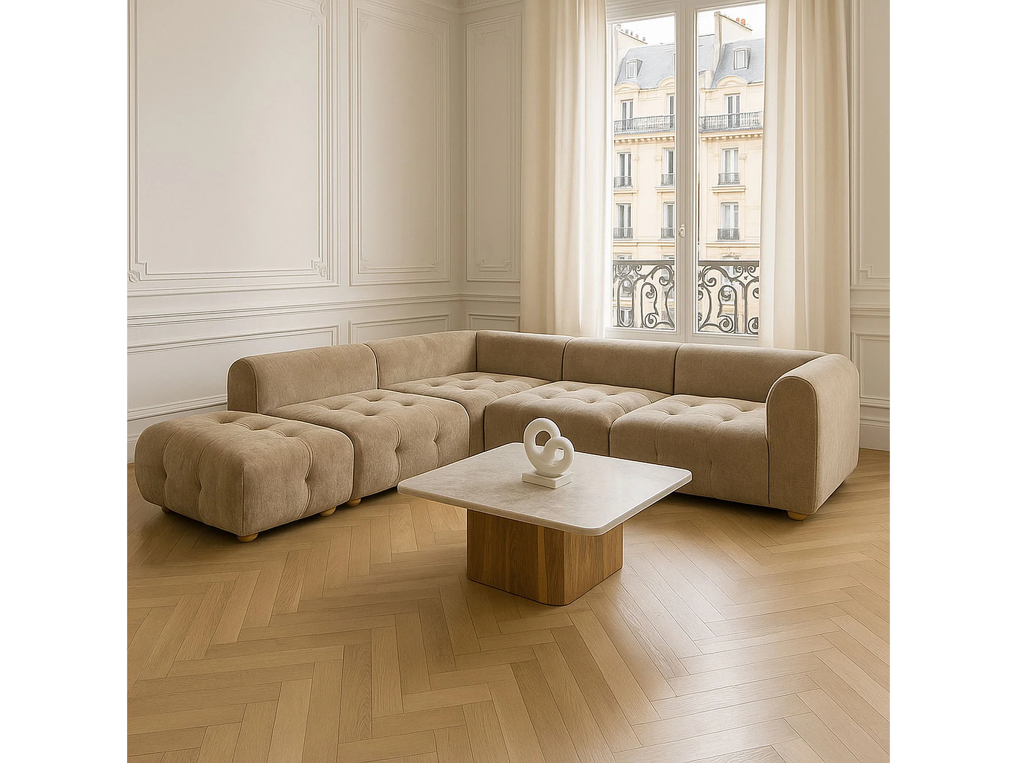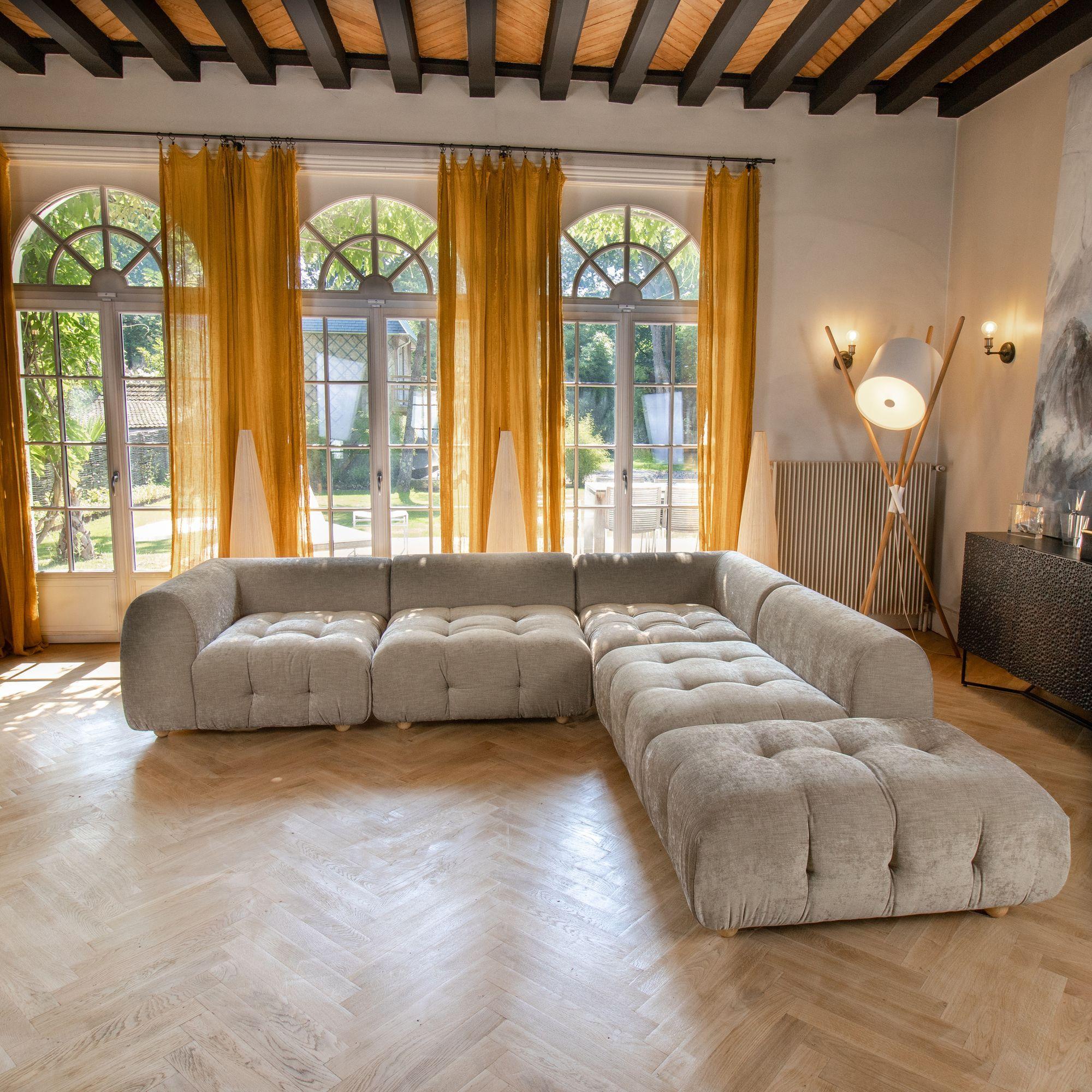 Now's Home - Canape Angle 5 Modules Gris Taupe Velours Pane 300x265x67cm Twiggy