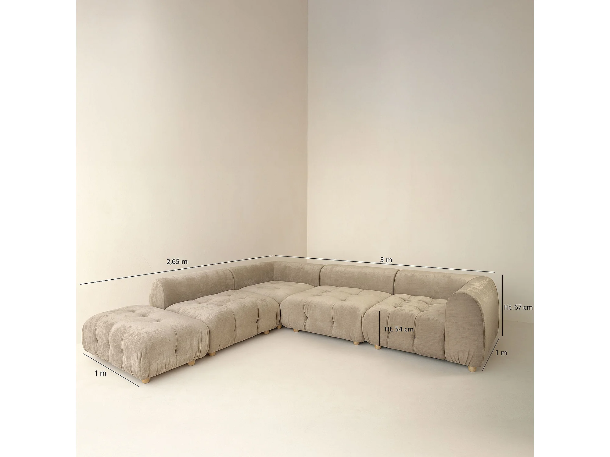 Now's Home - Canapé Angle 5 Modules Gris Taupé Velours Pané 300x265x67cm Twiggy