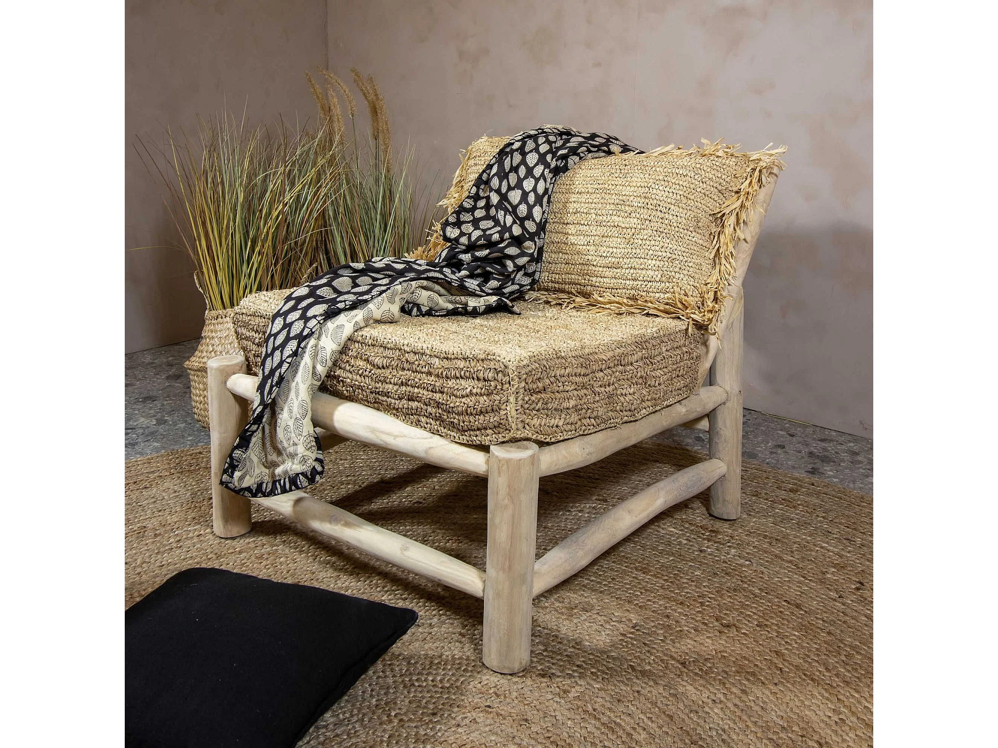 Now's Home - Canape D'angle En Teck Et Revetement Sisal Et Raphia 3 Places