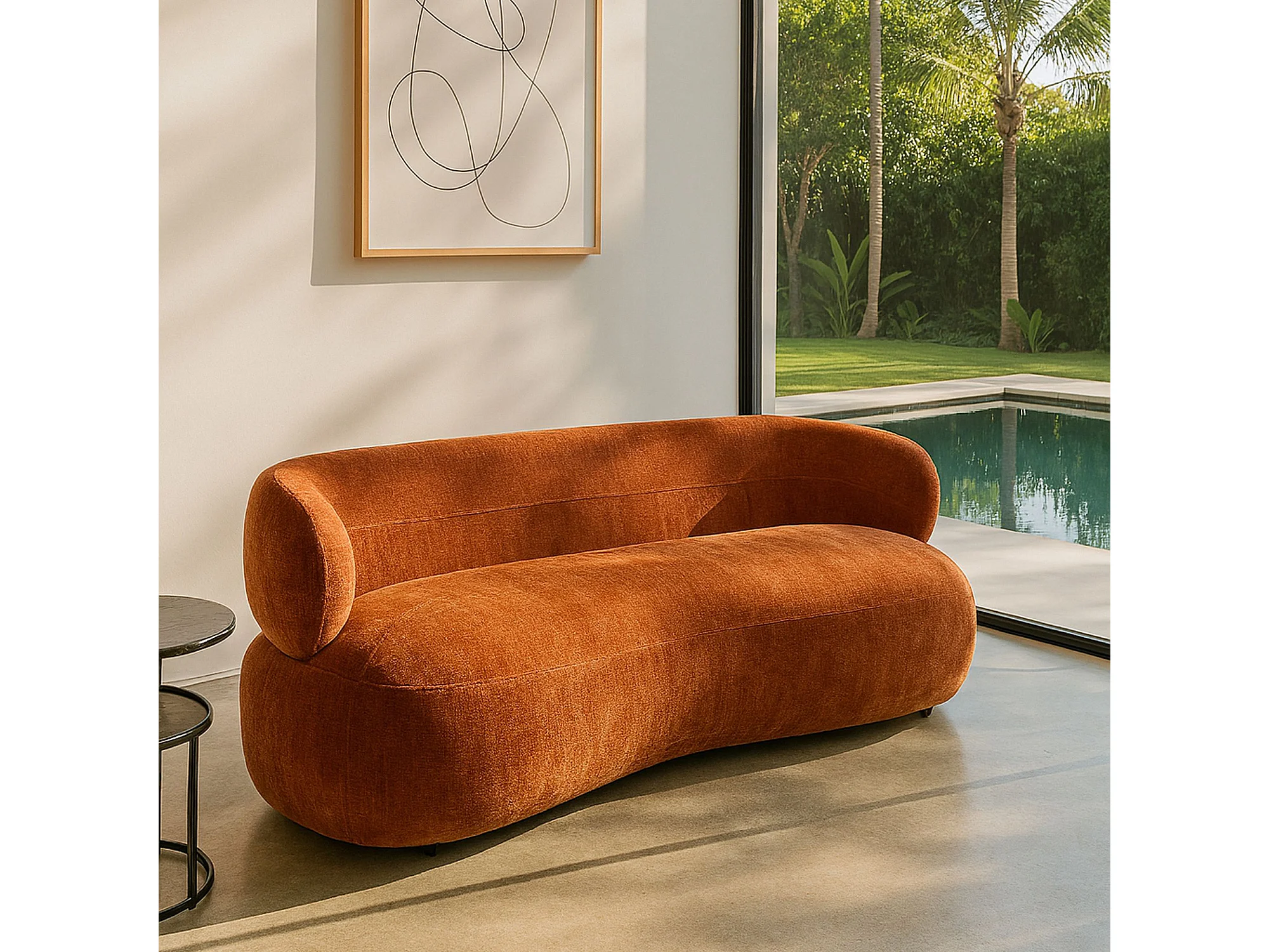 Now's Home - Canapé En Velours Texturé Terracotta 231x91x78cm Glove